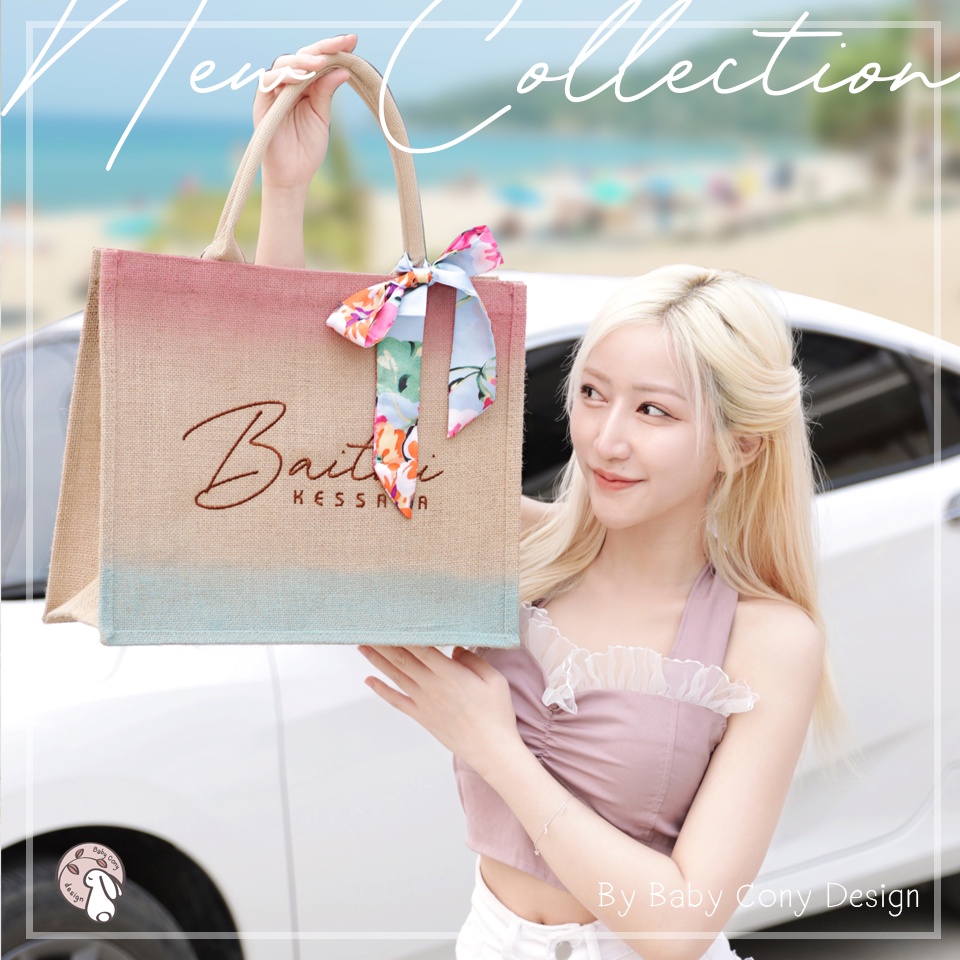 กระเป๋ากระสอบปักชื่อ Pastel ปักฟรี+พร้อมริบบิ้น