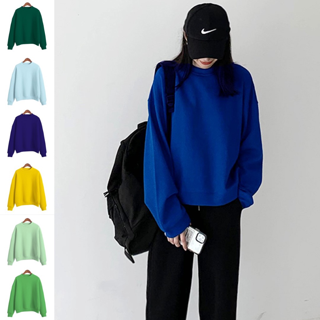 🔥ราคาถูกที่สุด🔥เสื้อกันหนาวผ้าสำลีแขนยาว ทรงโอเวอร์ไซส์ 16 สี