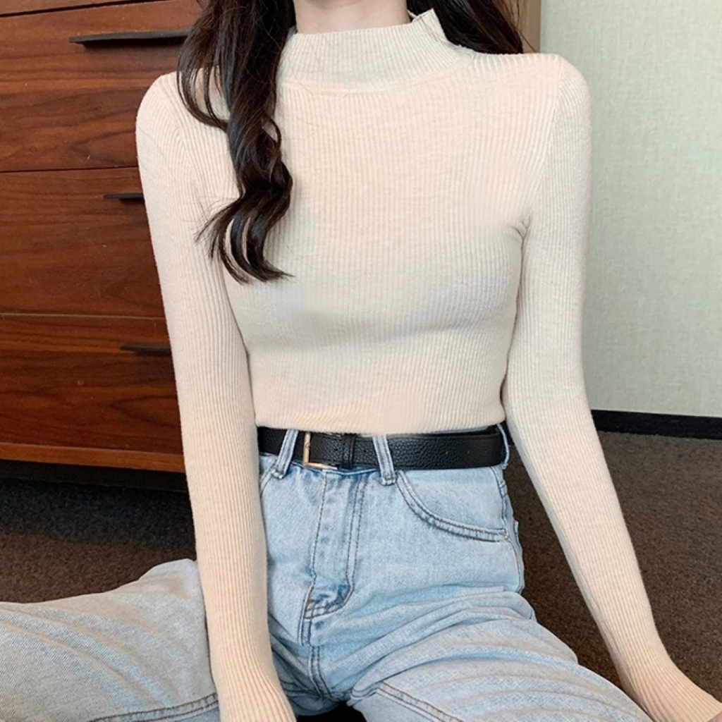 🔥ราคาถูกที่สุด🔥เสื้อคอเต่าไหมพรมแขนยาว สีสวยเยอะมาก