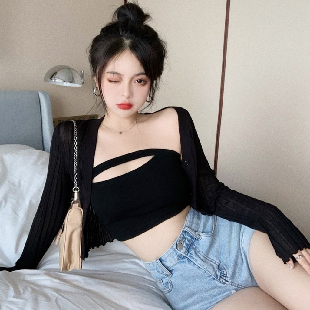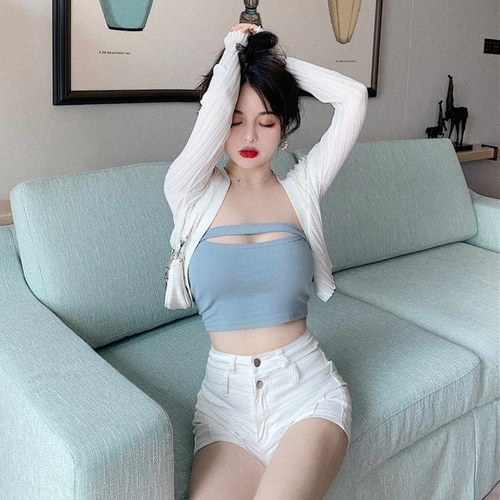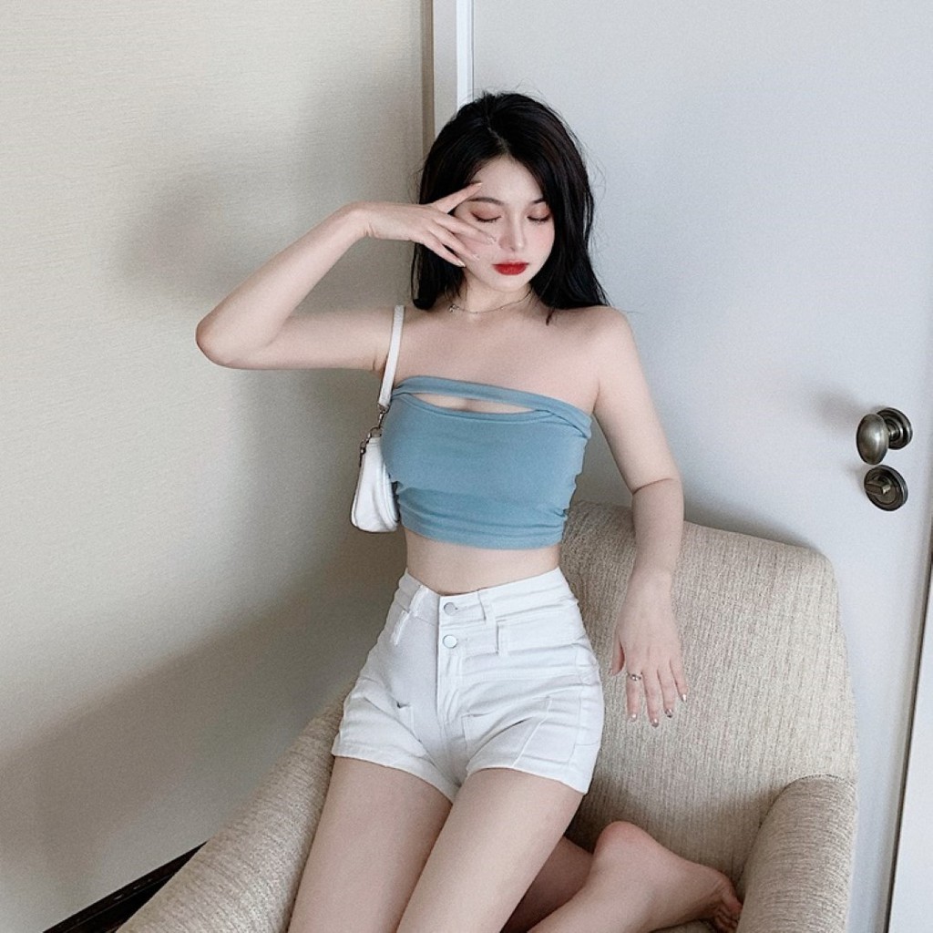 🔥ราคาถูกที่สุด🔥เสื้อแฟชั่นเกาะอกสีพื้น อกผ่าเซ็กซี่ 3 สี