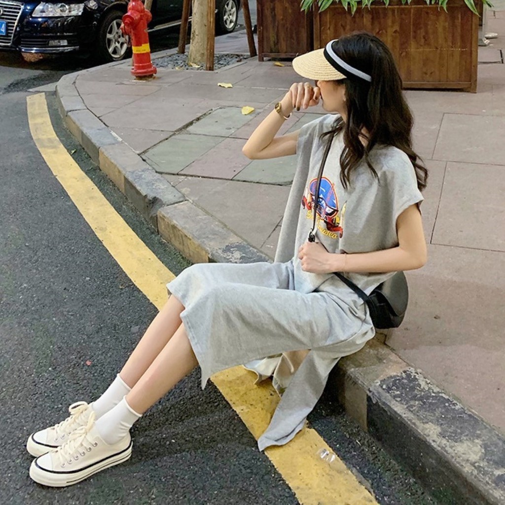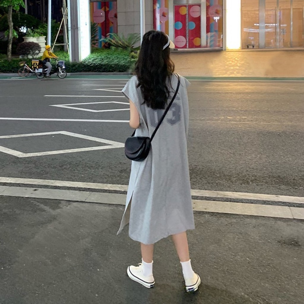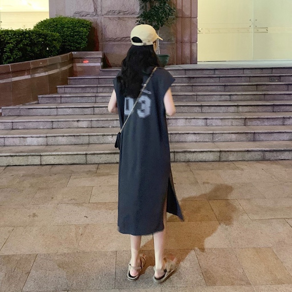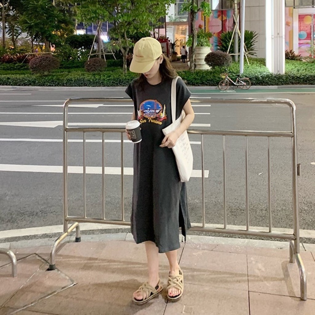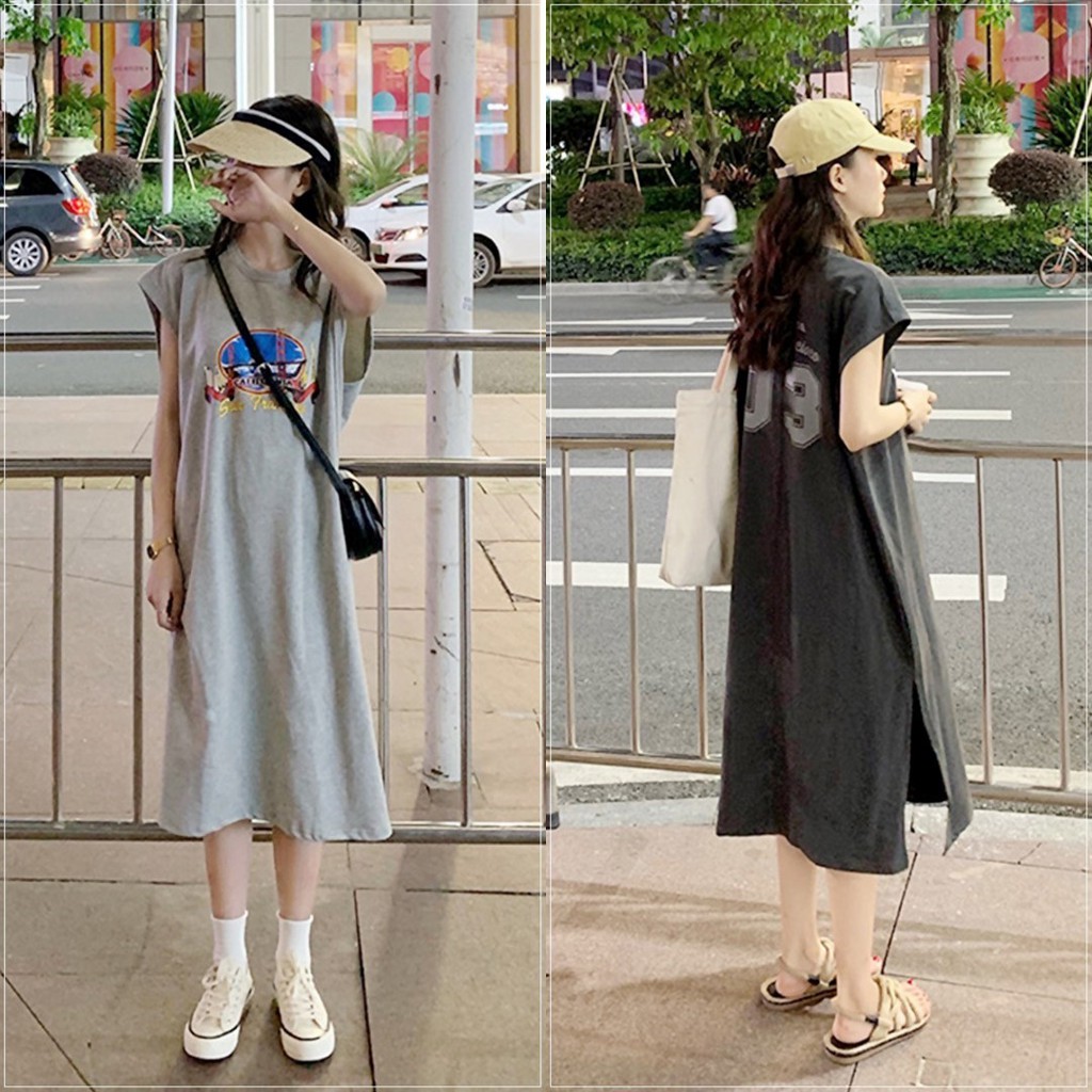 🔥ราคาถูกที่สุด🔥ชุดเดรสยาวแขนกุดแต่งผ่าข้าง 2 สี สกรีนลาย San Francisco