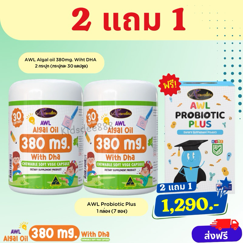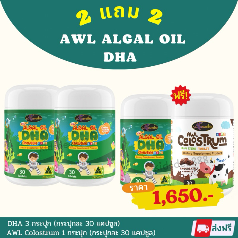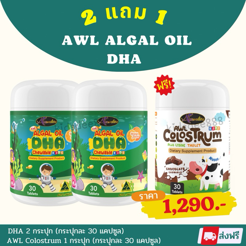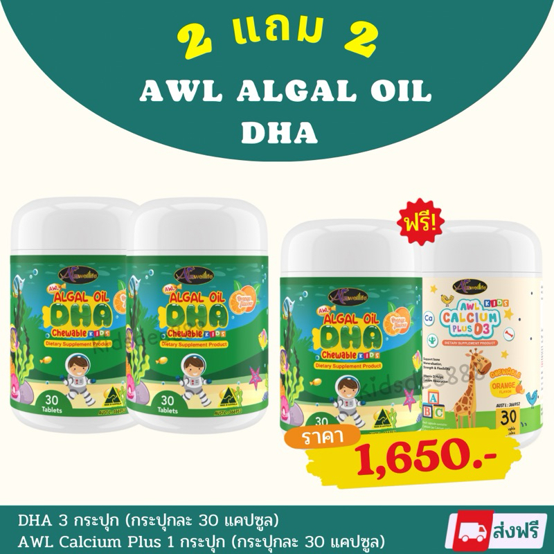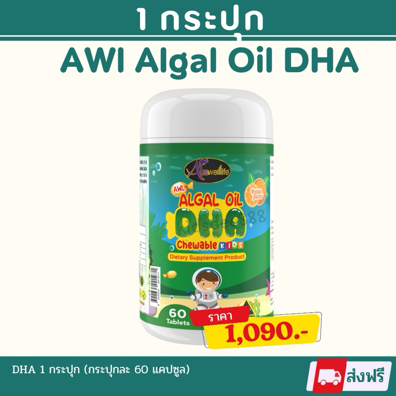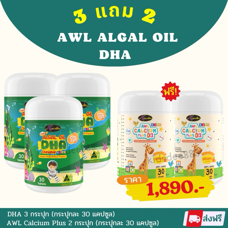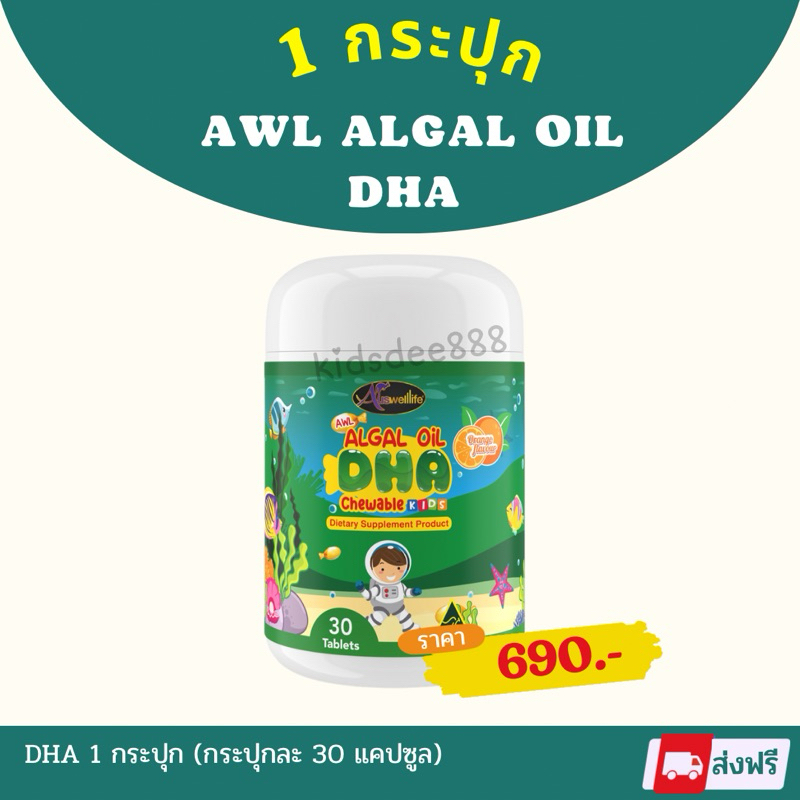 DHA Auswelllife วิตามินสำหรับเด็ก AWL Algal Oil DHA Chewble น้ำมันสาหร่าย ดีเอชเอ ชนิดเคี้ยว 30 แคปซูล