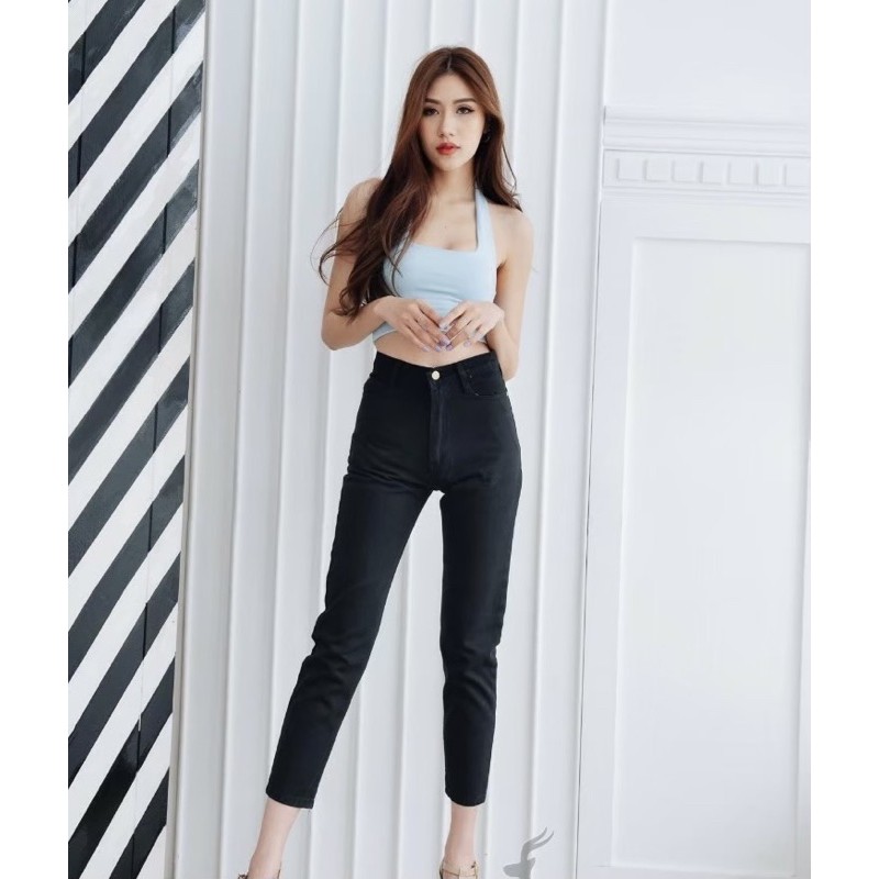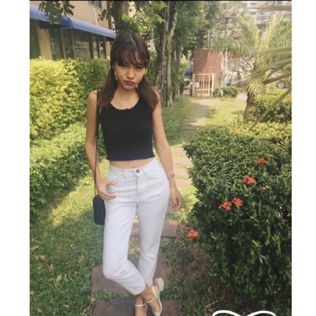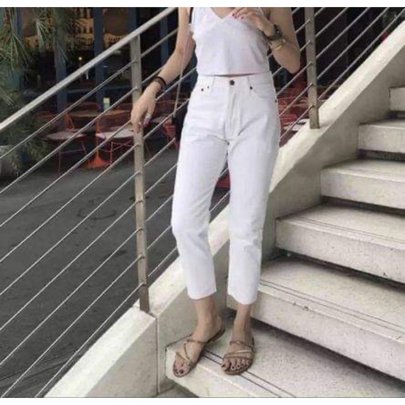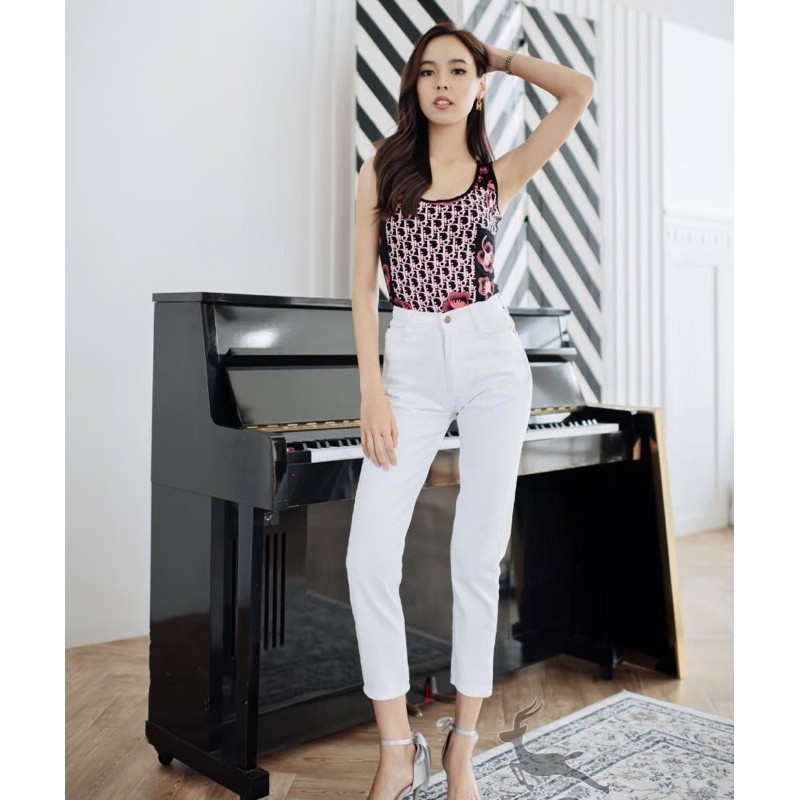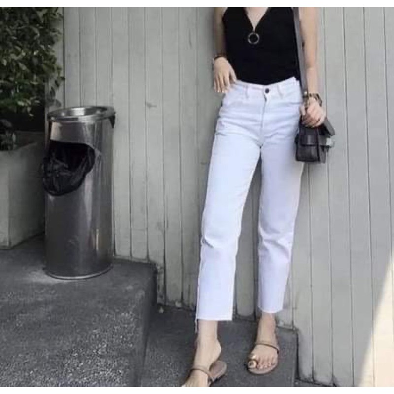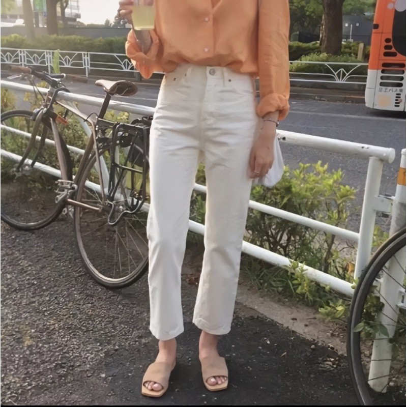 กางเกงยีนส์ทรงบอยสลิม ผ้าไม่ยืด กางเกงสีขาว เอวสูง ปิดสะดือ ทรงยอดฮิตในตำนาน