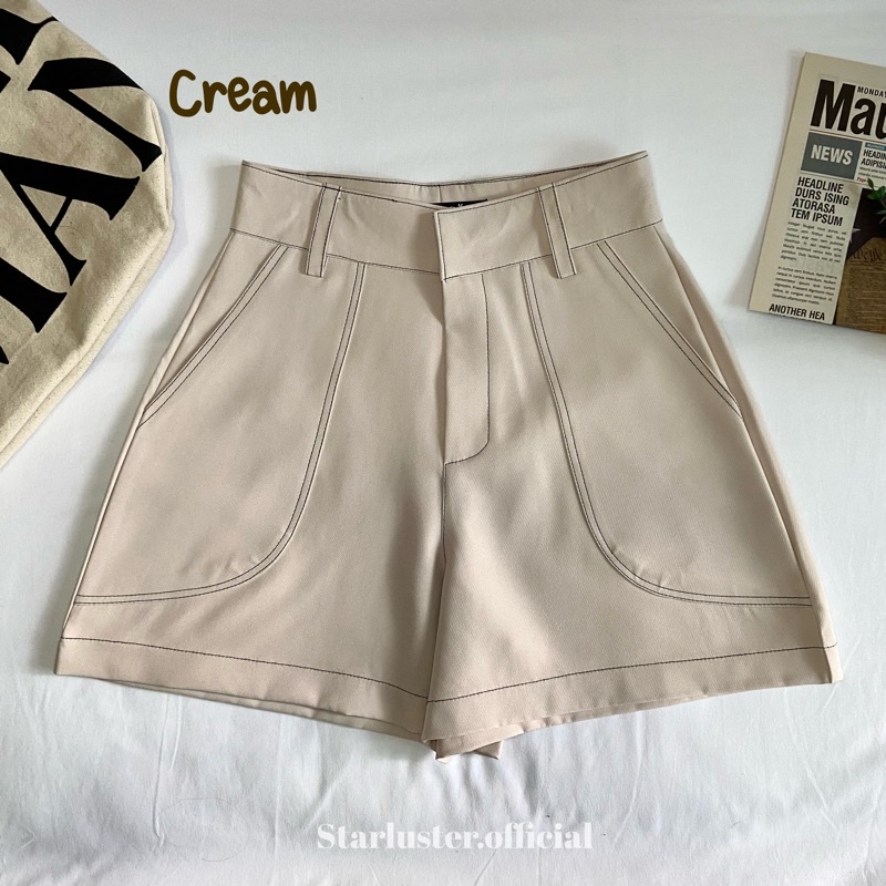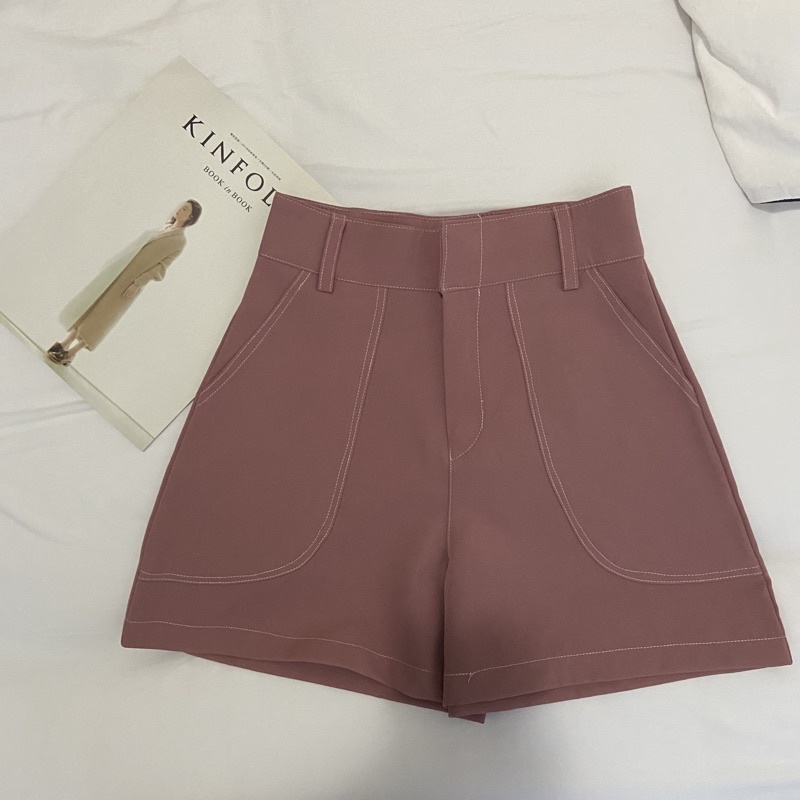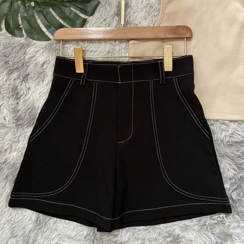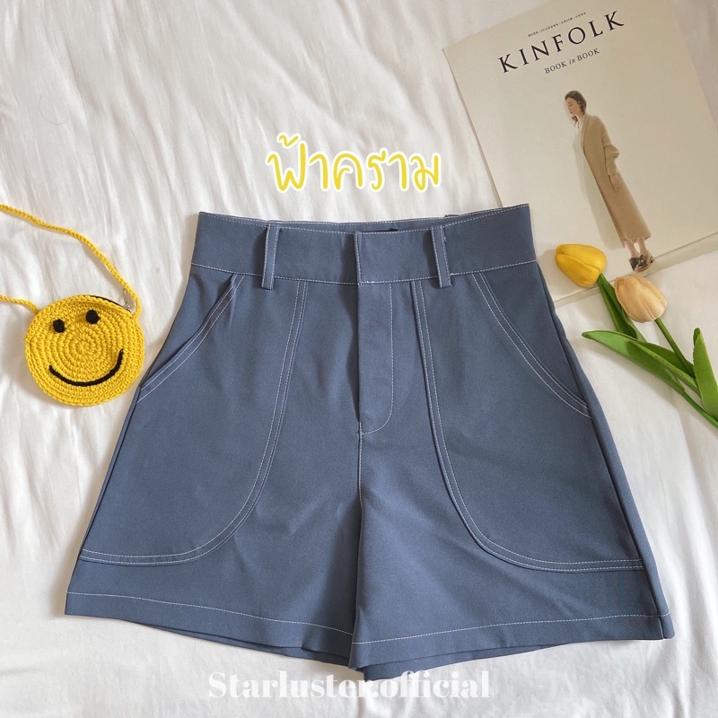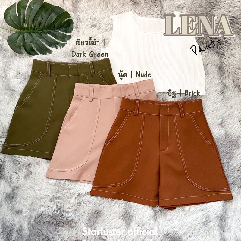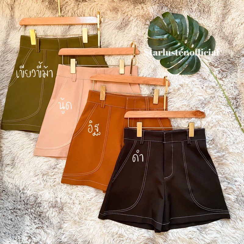 กางเกงขาสั้นเอวสูง แต่งด้ายสี 𝐋𝐞𝐧𝐚 𝐏𝐚𝐧𝐭𝐬 🧢DR-02 รุ่นกระเป๋าโค้ง