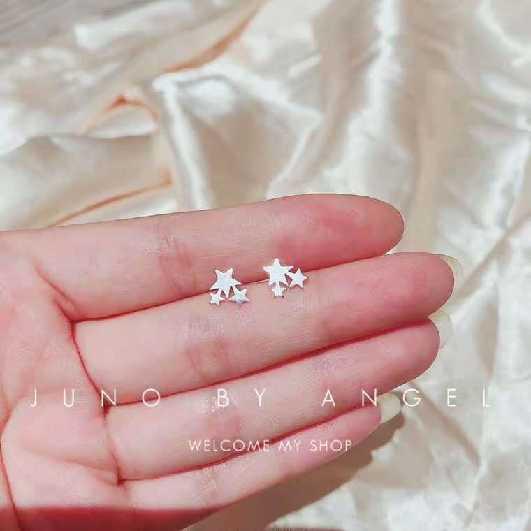 A HELLO GIRL ต่างหูเงิน 925 จี้รูปดาว ดวงจันทร์ สไตล์เกาหลี เรียบง่าย เครื่องประดับ สําหรับผู้หญิง