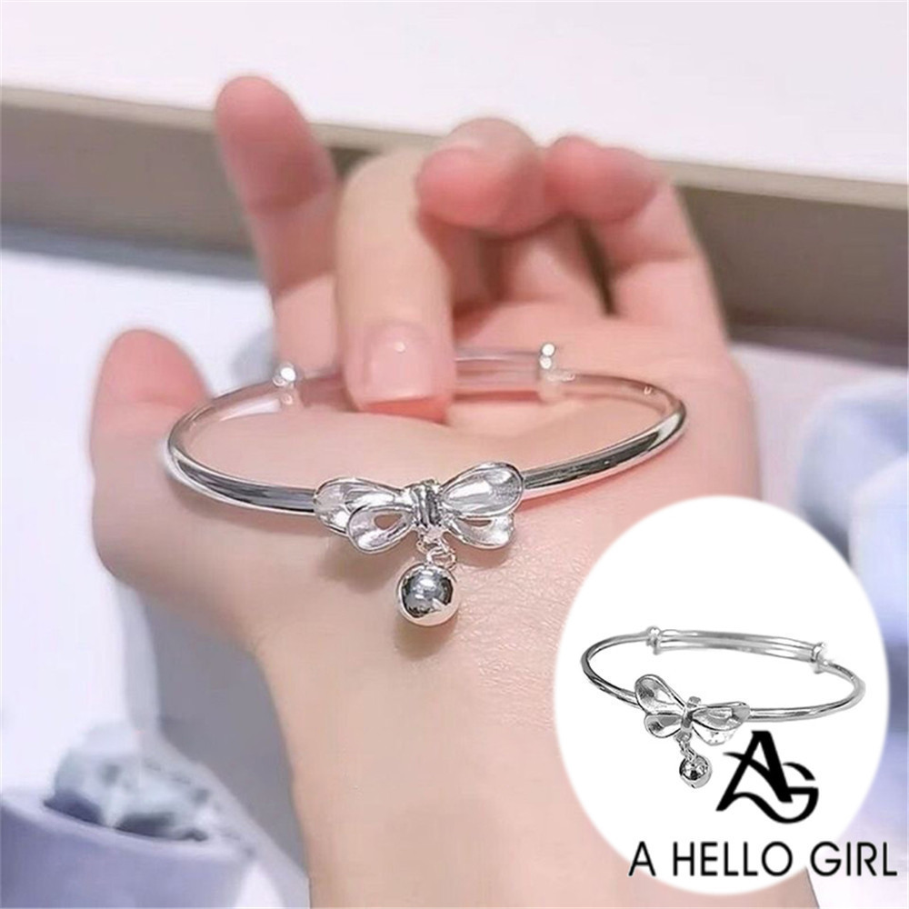 A HELLO GIRL สร้อยข้อมือเงิน ประดับโบว์ สไตล์เกาหลี แฟชั่นสําหรับผู้หญิง