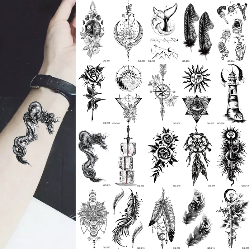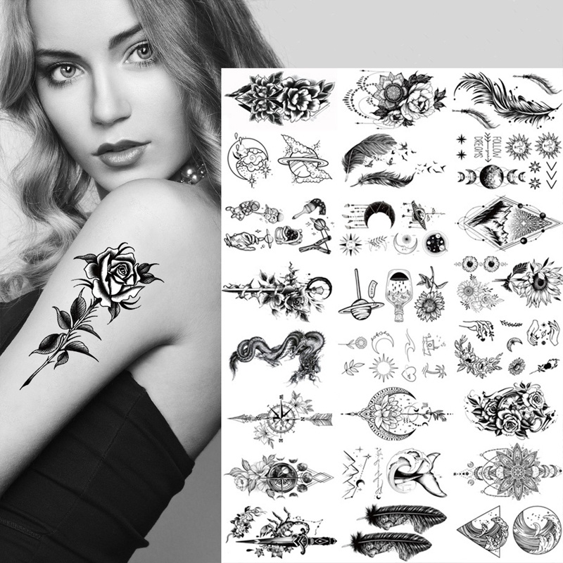 A HELLO GIRL ใหม่ สติกเกอร์รอยสัก ขนาดเล็ก กันน้ํา 10*6 ซม. สีดํา และสีขาว แฟชั่นสําหรับผู้หญิง