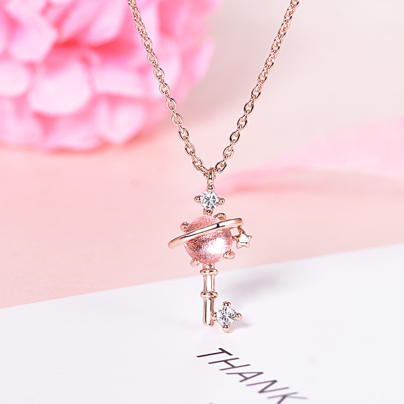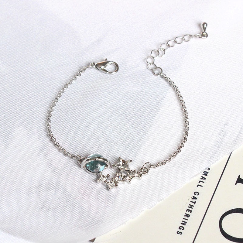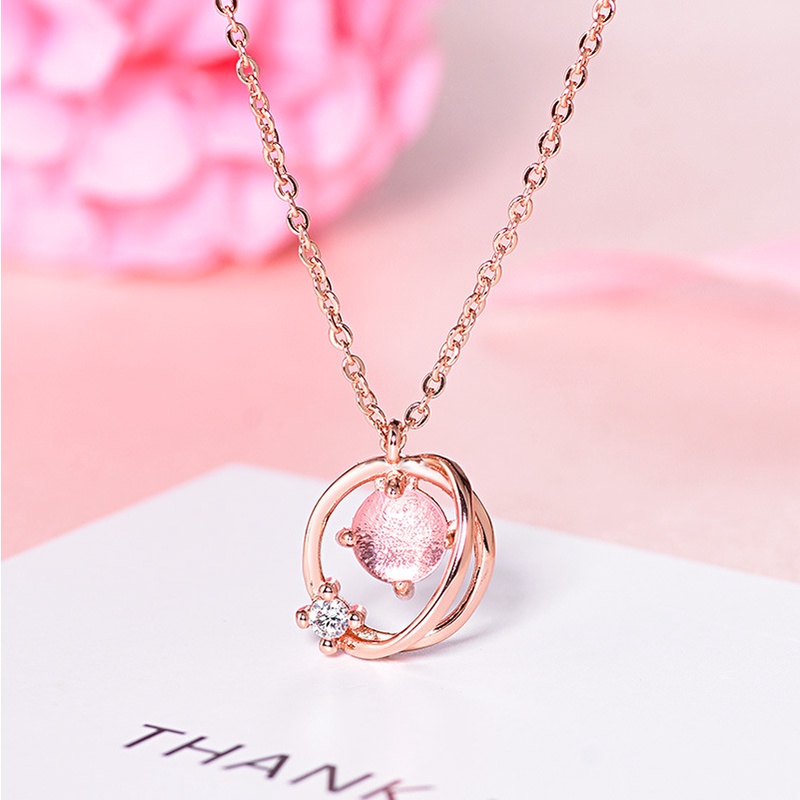 A HELLO GIRL สร้อยคอแฟชั่น รูปดาวเคราะห์ ประดับคริสตัล สีฟ้า สีชมพู