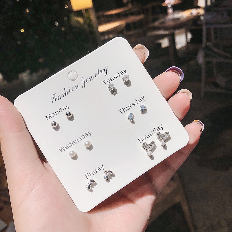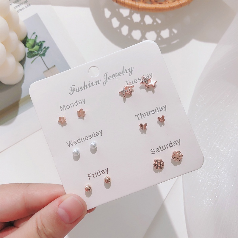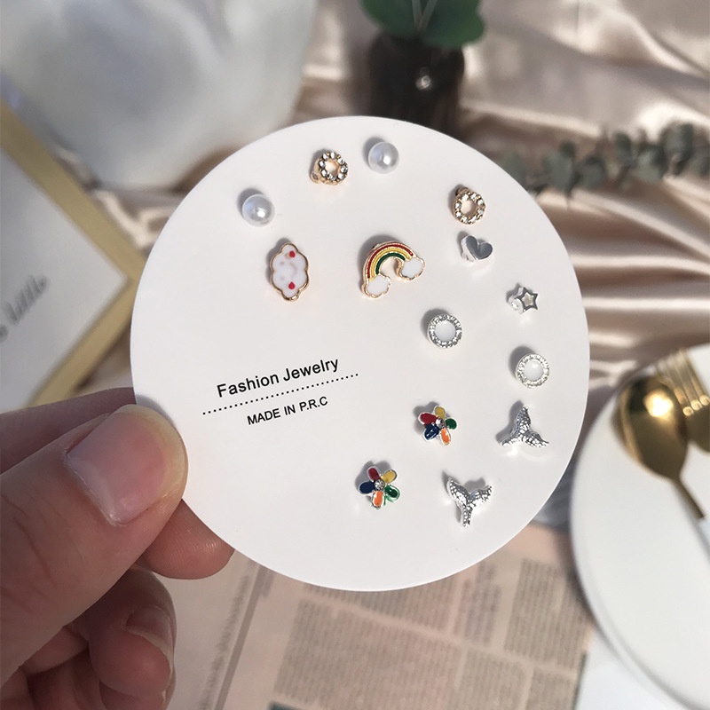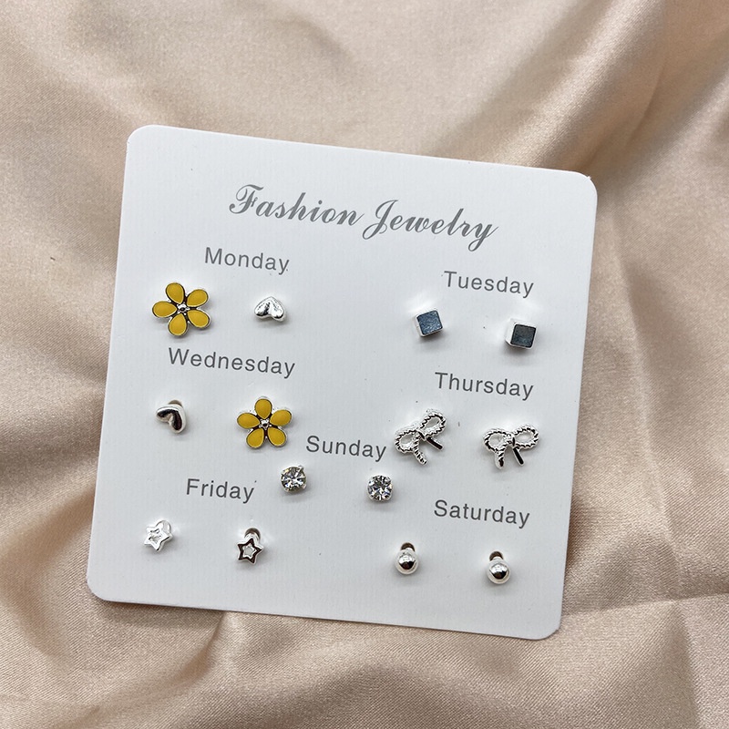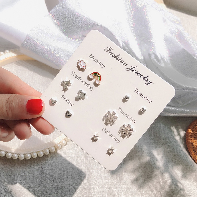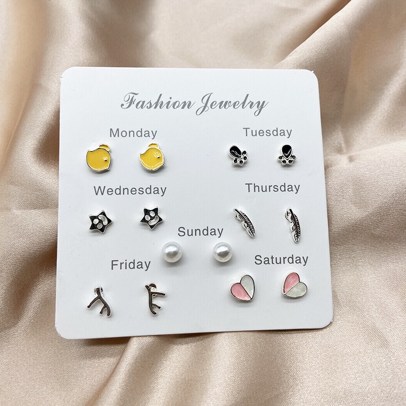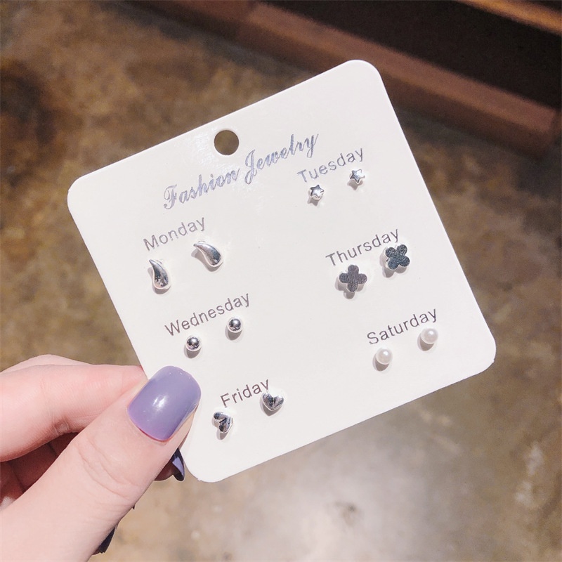A HELLO GIRLชุดเครื่องประดับ ต่างหู ขนาดเล็ก สวยหรู เหมาะกับของขวัญ แฟชั่นเรียบง่าย สําหรับเด็กผู้หญิง จํานวน 7 คู่