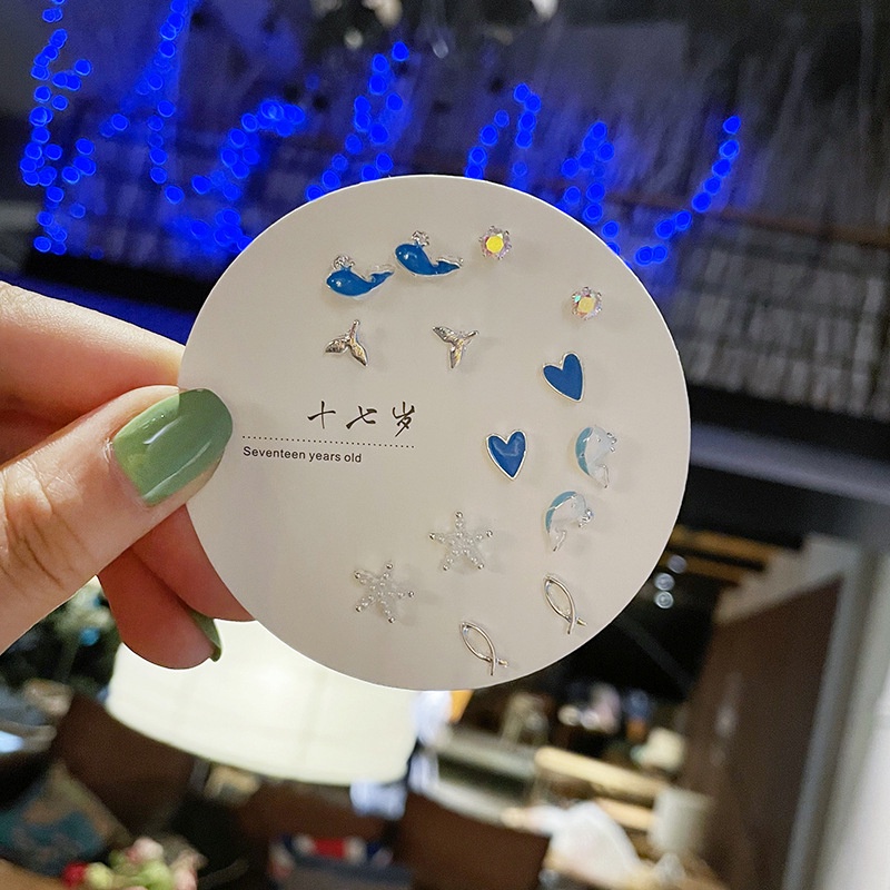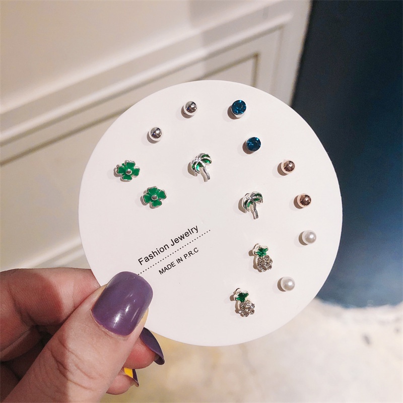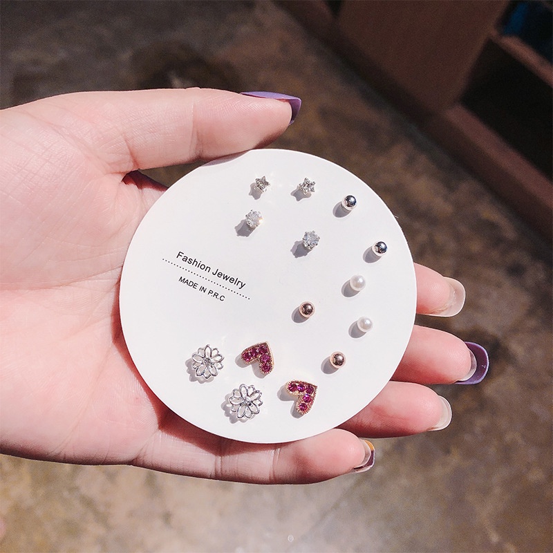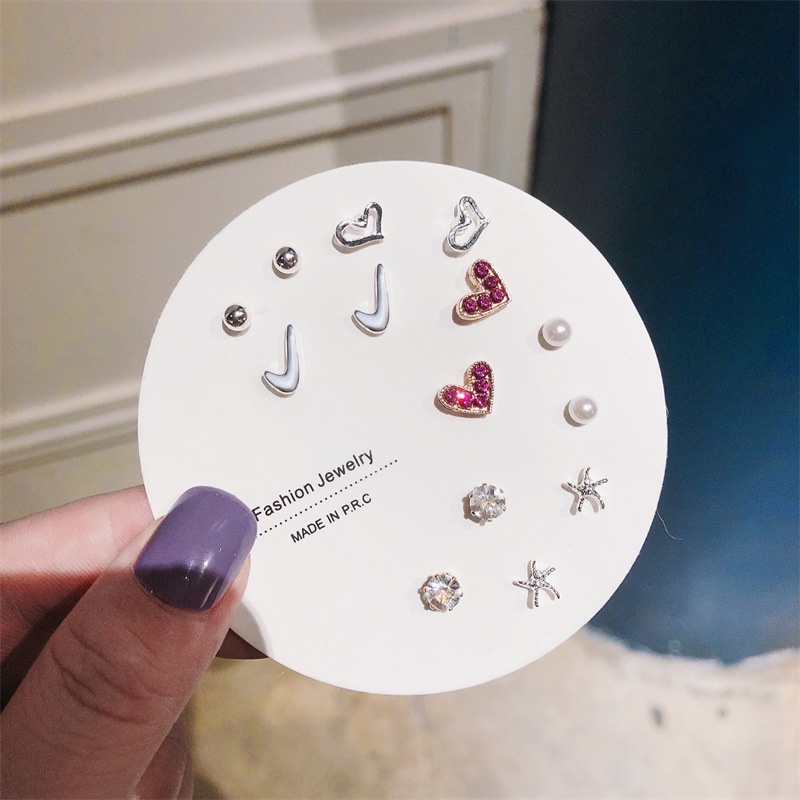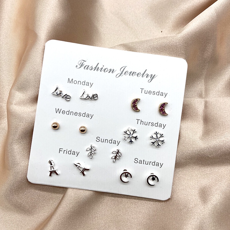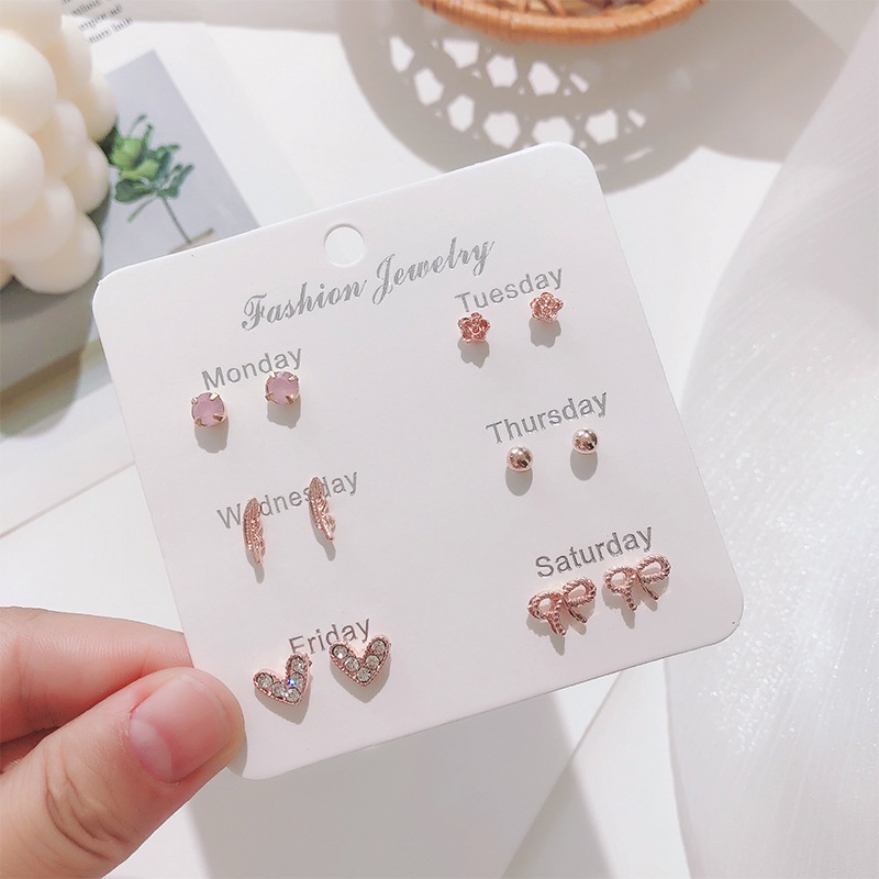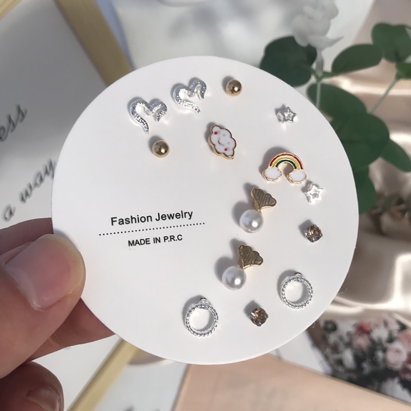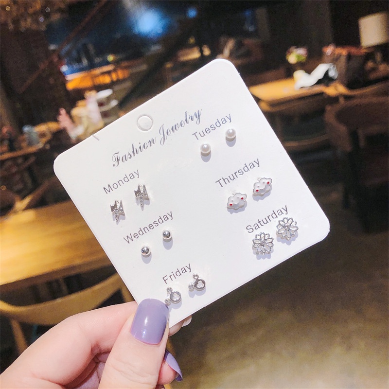 A HELLO GIRLชุดเครื่องประดับ ต่างหู ขนาดเล็ก สวยหรู เหมาะกับของขวัญ แฟชั่นเรียบง่าย สําหรับเด็กผู้หญิง จํานวน 7 คู่