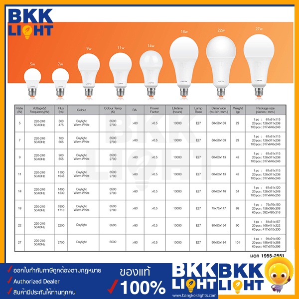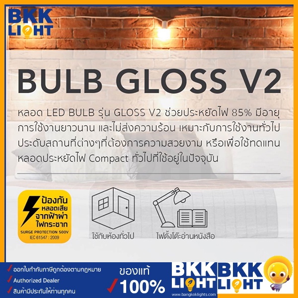 Lamptan หลอด Led Bulb รุ่น GLOSS V2 5w / 7w / 9w / 11w / 14w / 18w / 22w / 27w ช่วยประหยัดไฟ 85% มีประกัน