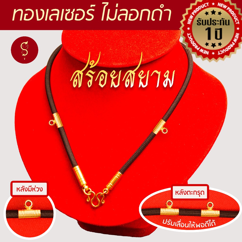 SOI-SIAM [งานอย่างดี มีรับประกัน] สร้อยเชือก ห้อยพระ คล้องหน้า 3 องค์ ลายมงคล l ของขวัญผู้ใหญ่ ผู้ชาย เด็ก ผู้หญิง