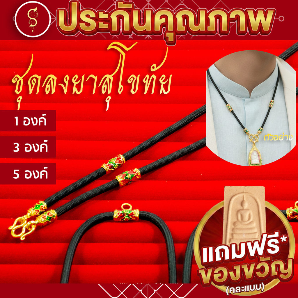 [แถมฟรี* มีใบรับประกัน] สร้อยเชือก ห้อยพระ ลงยาสุโขทัย ห้อยหน้า 1-3-5 องค์ l ของขวัญผู้ใหญ่ ผู้ชาย เด็กผู้หญิง
