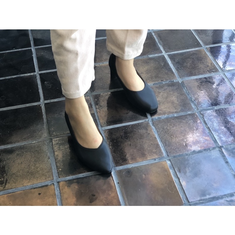 หัวตัด 2 นิ้ว สีดำ รองเท้าคัชชูไซส์เยอะ 35-46 (สามารถใส่รับปริญญาได้) [Black SQ 2] AS20BLK
