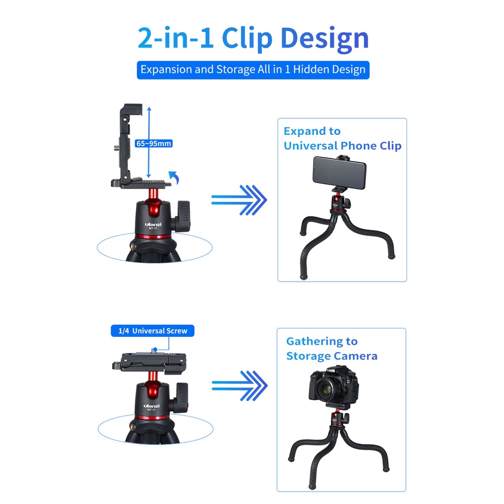 Ulanzi MT-11 Multi-functional Octopus Tripod ขาตั้งมือถือและกล้องขนาดเล็ก มาพร้อมหัวจับมือถือ