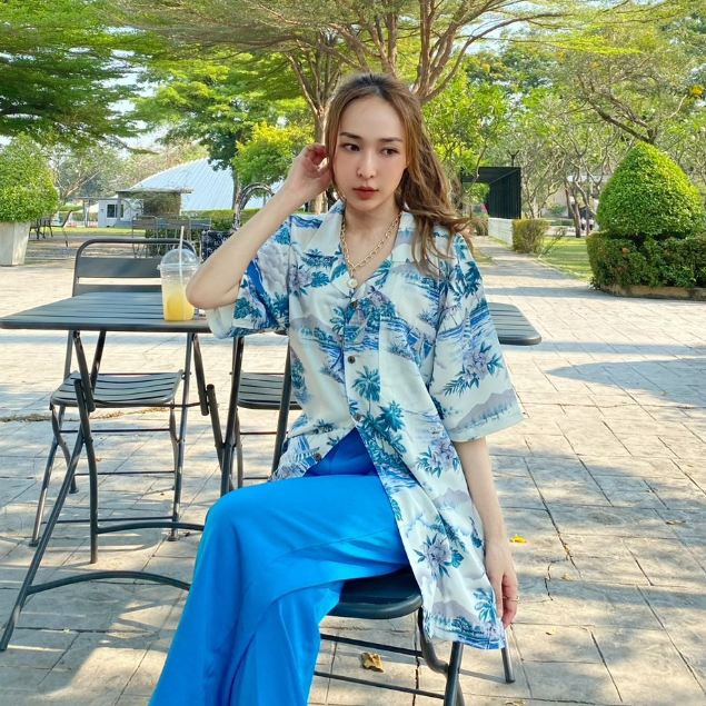 ROAMING HR10 เสื้อฮาวาย ผ้าเรยอนญี่ปุ่น เสื้อครอบครัว Rayon Hawaiian Shirts (บลูฮาวาย 2022)