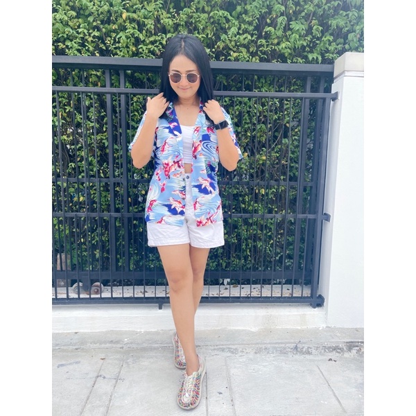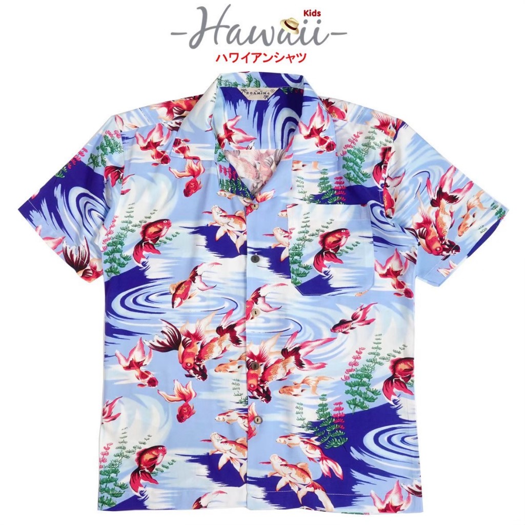 Roaming HR25 เสื้อฮาวาย ผ้าเรยอนญี่ปุ่น เสื้อครอบครัว Rayon Hawaiian Shirts (ปลาทอง)