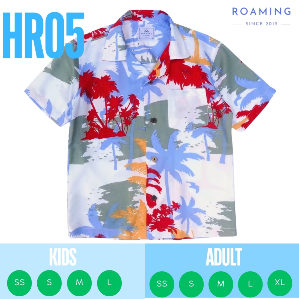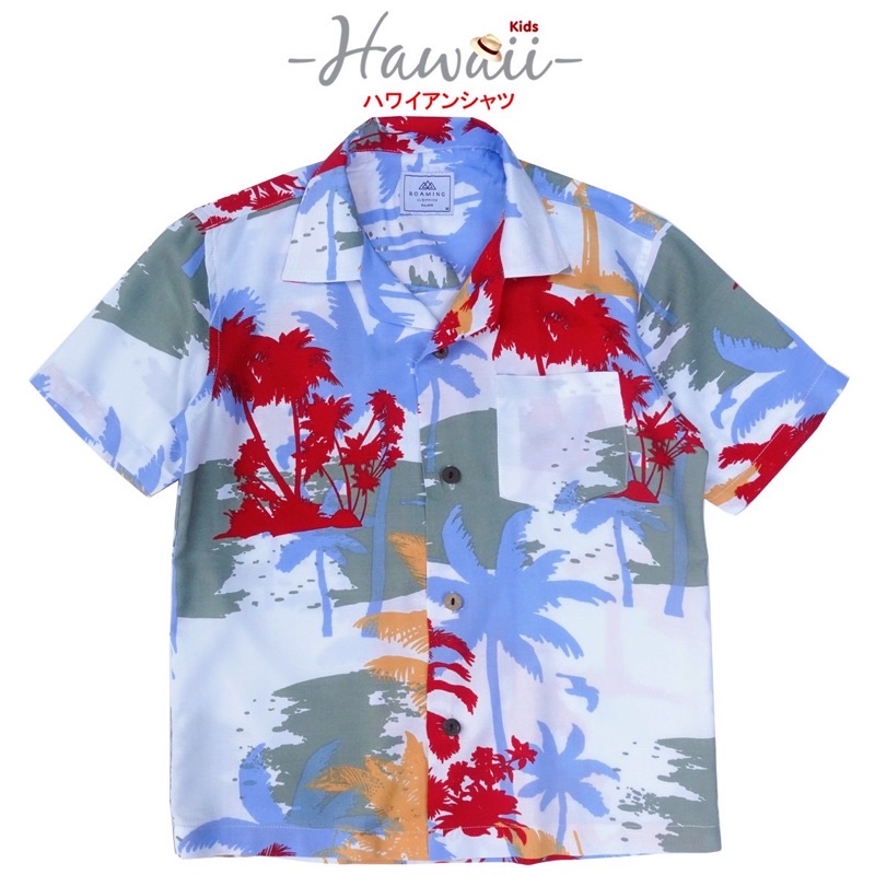 ROAMING HR05 เสื้อฮาวาย ผ้าเรยอนญี่ปุ่น เสื้อครอบครัว Rayon Hawaiian Shirts (มะพร้าว คัลเลอร์ฟู พื้นขาว)