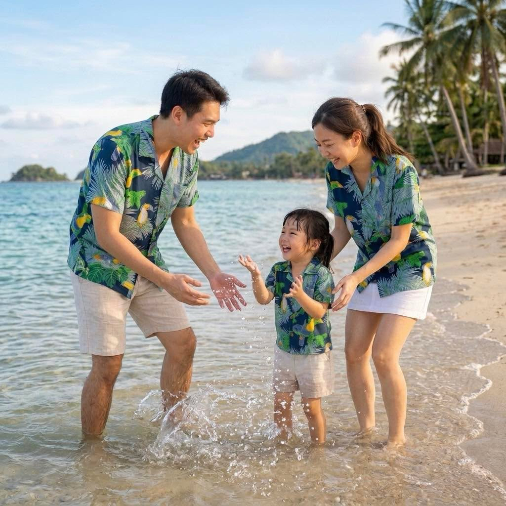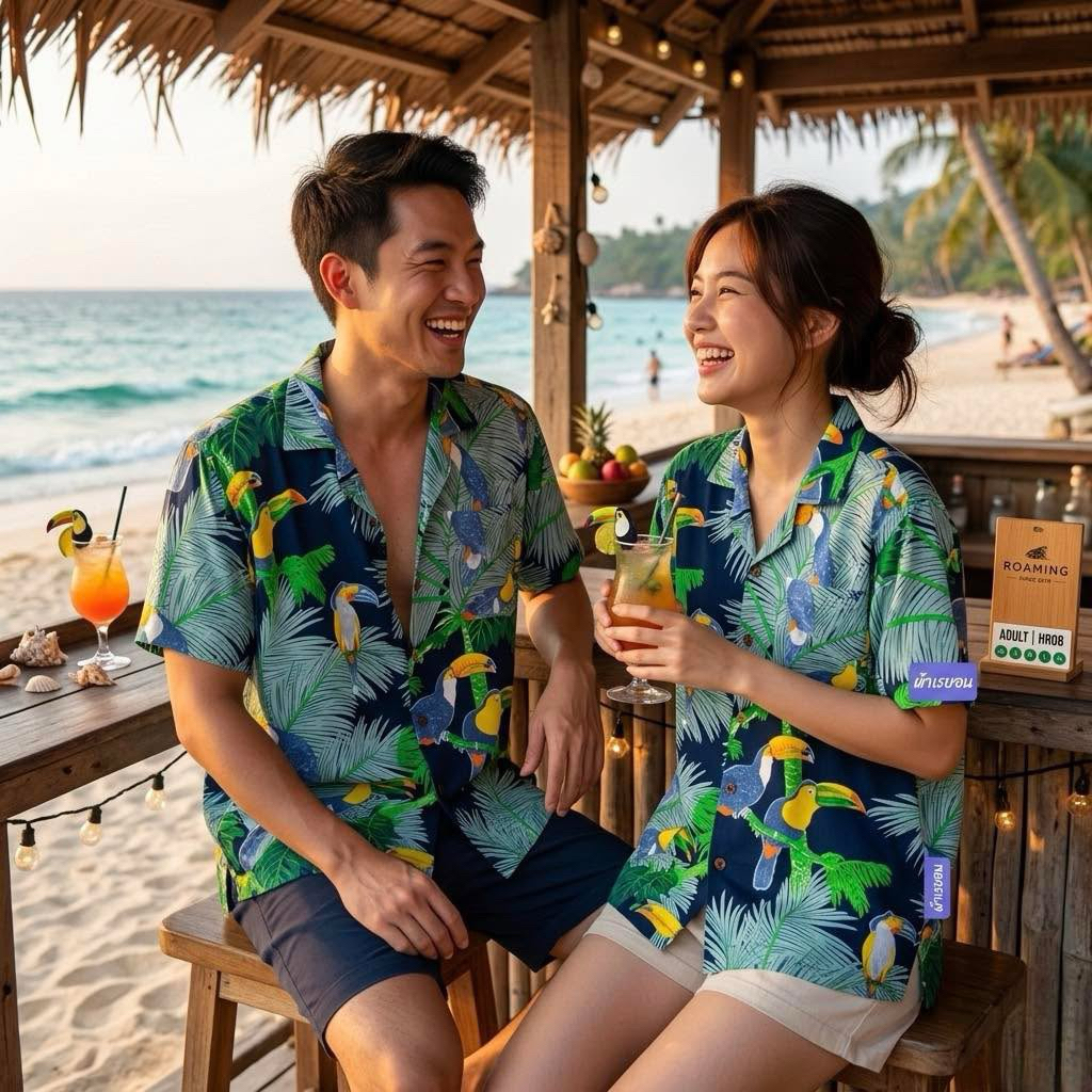 ROAMING HR08 เสื้อฮาวาย ผ้าเรยอนญี่ปุ่น เสื้อครอบครัว Rayon Hawaiian Shirts (นกเงือกเขียว)