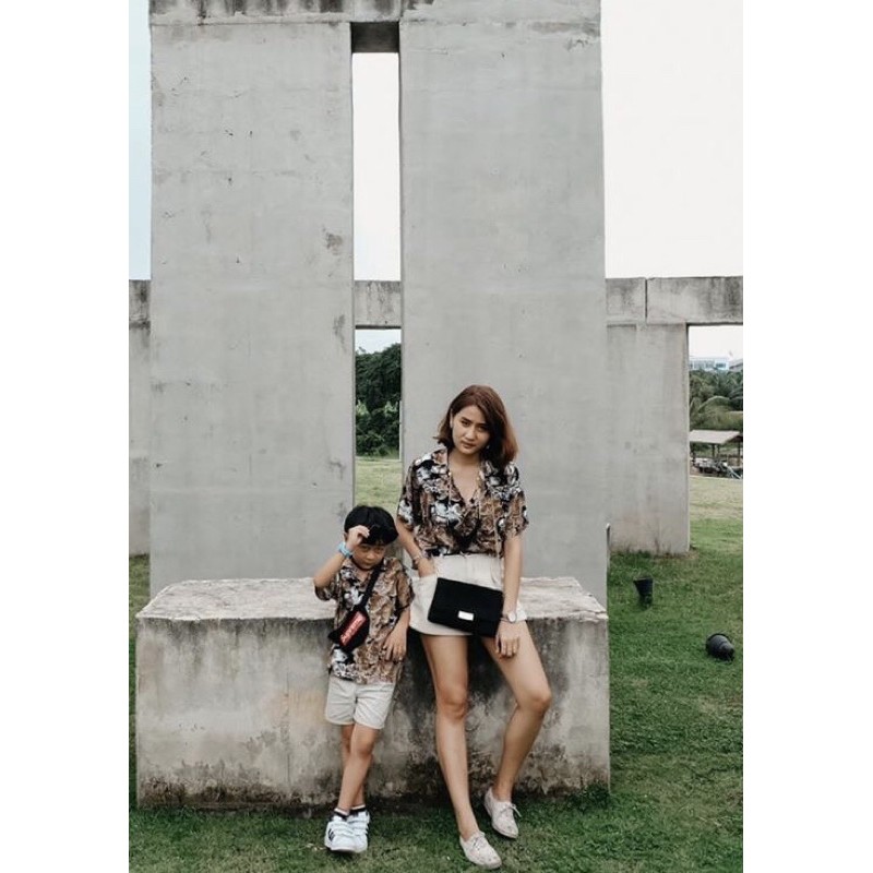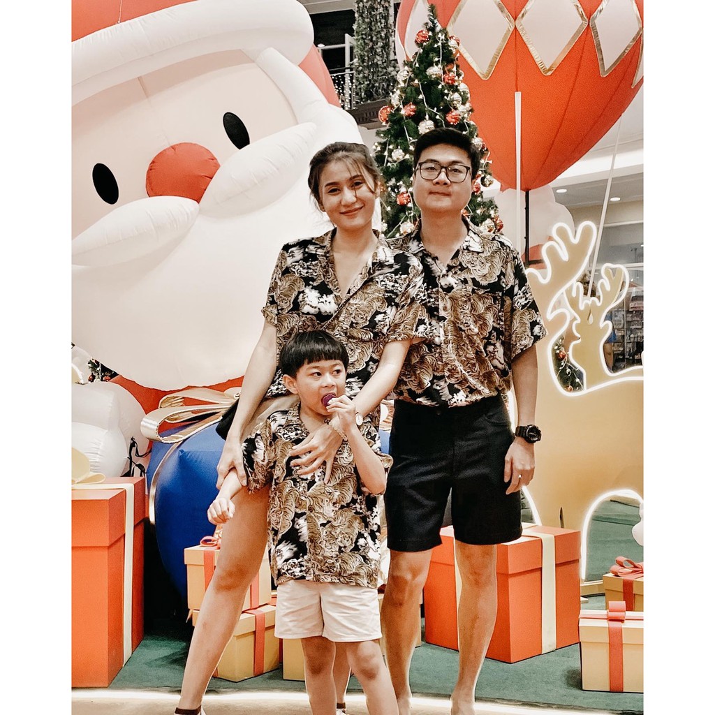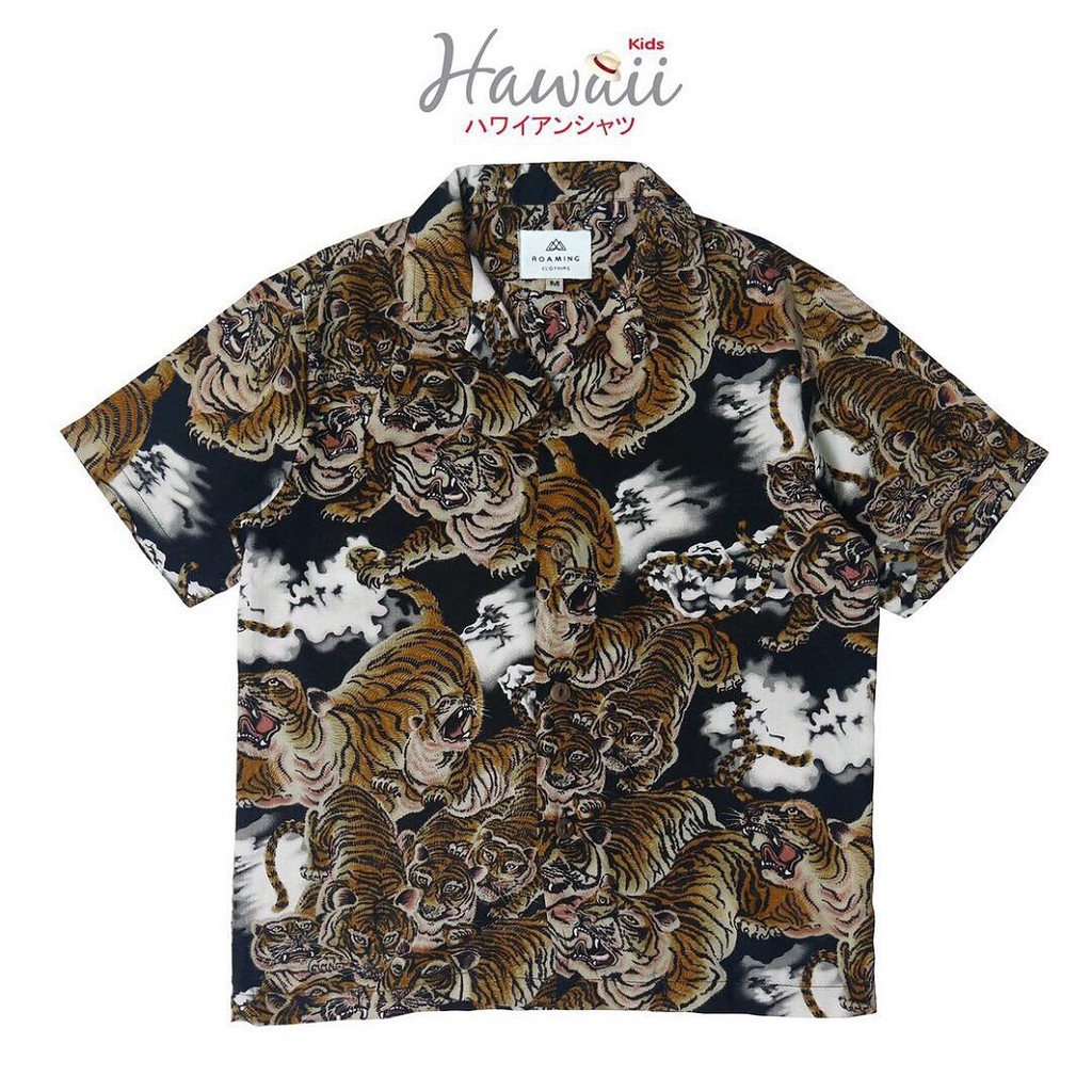 ROAMING HR11 เสื้อฮาวาย ผ้าเรยอนญี่ปุ่น เสื้อครอบครัว Rayon Hawaiian Shirts (เสือ100ดำ)