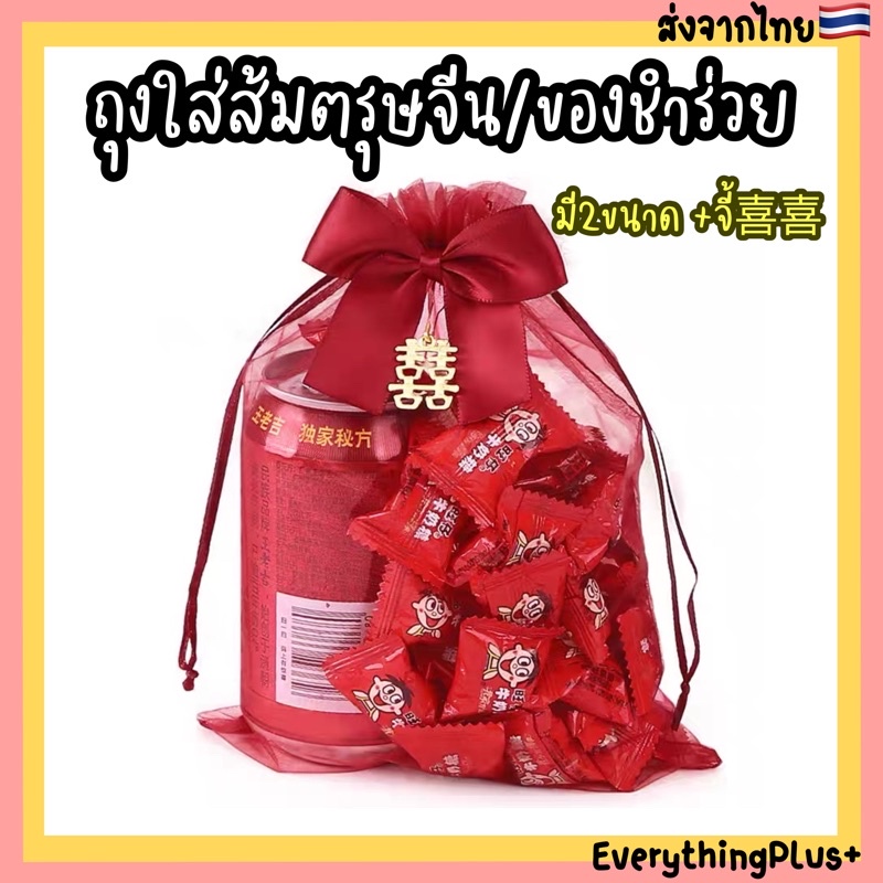 ส่งจากไทย🇹🇭 ถุงส้มตรุษจีน ถุงใส่ส้มตรุษจีน ถุงใส่ของชำร่วย ผ้าไหมแก้ว ถุงใส่งานแต่ง ใส่ของชำร่วย ถุงตาข่ายใสส้ม