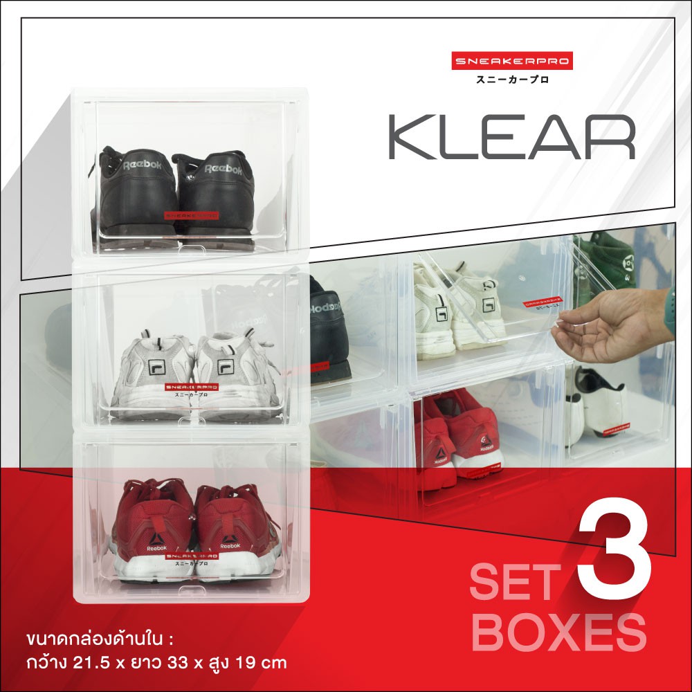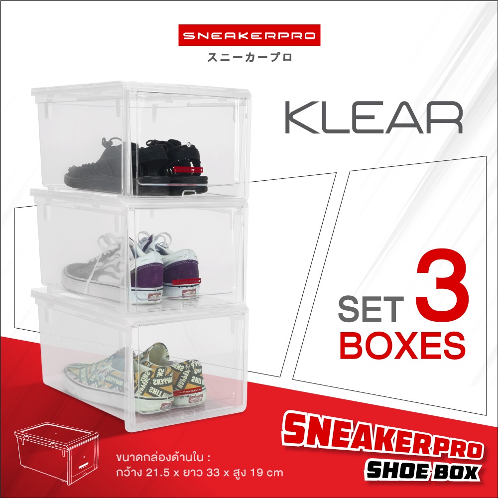 Sneaker pro เซตเล็ก 3 ชิ้น กล่องรองเท้า Klear สีใส พลาสติกคุณภาพดี ฝาหน้าเปิดแบบสไลด์