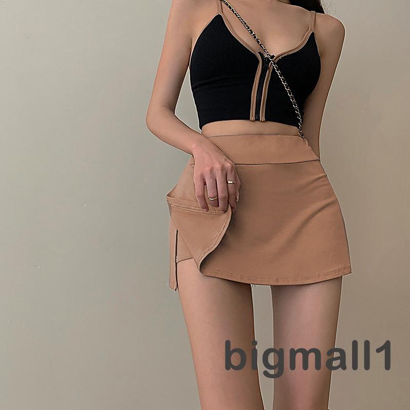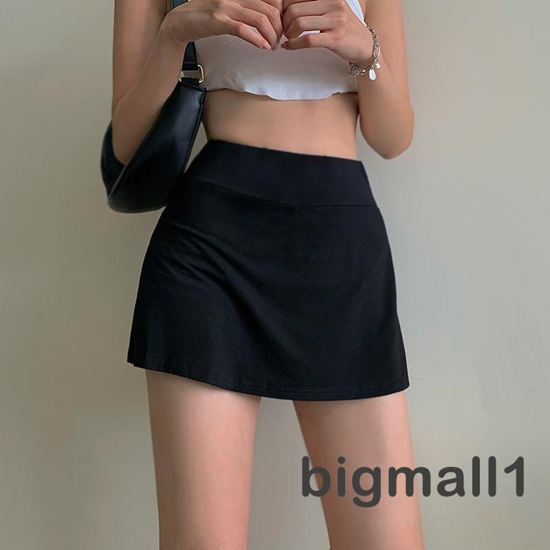 กระโปรงสั้น เอวสูง สีพื้น พร้อมซับใน สําหรับผู้หญิง