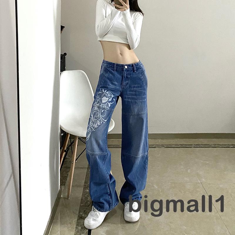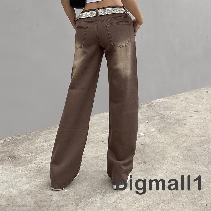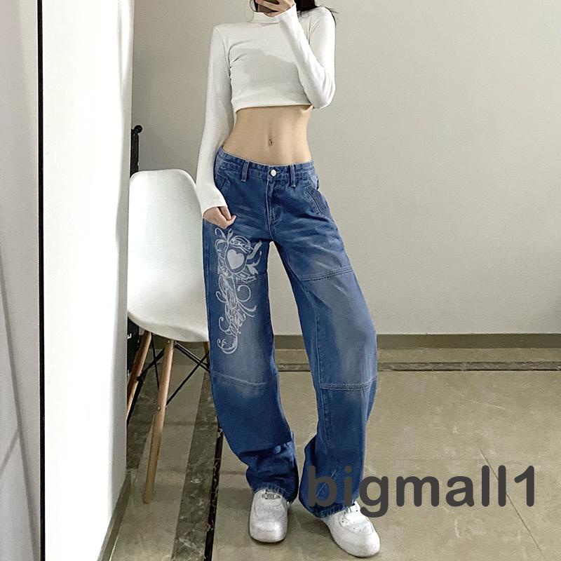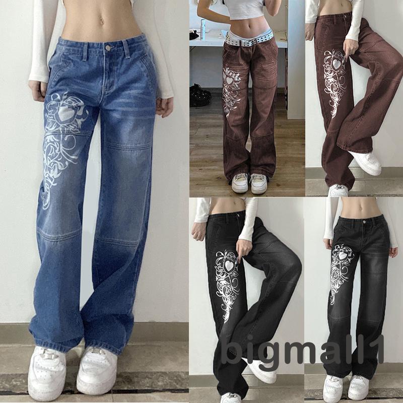 「ส่งจากไทย」กางเกงยีนขายาว เอวต่ำ ทรงหลวม สไตล์วินเทจ สําหรับสตรี