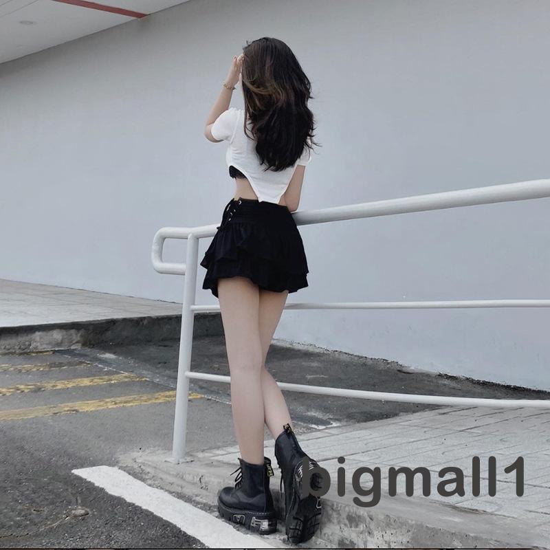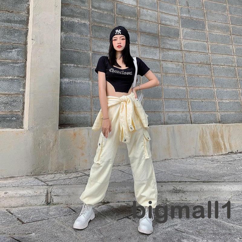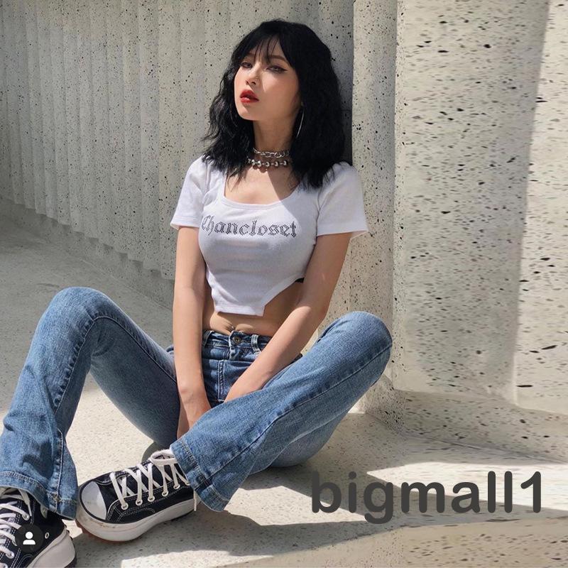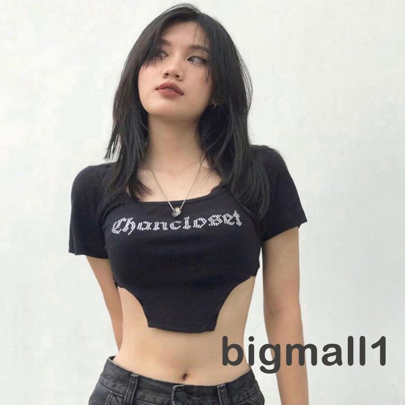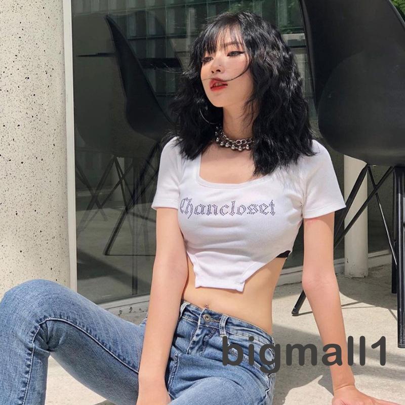 Bigmall - เสื้อครอปคอสี่เหลี่ยม พิมพ์ลายตัวอักษร สําหรับผู้หญิง