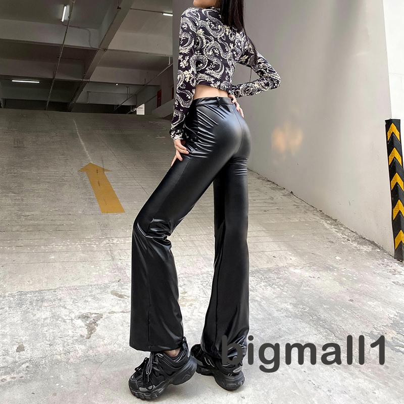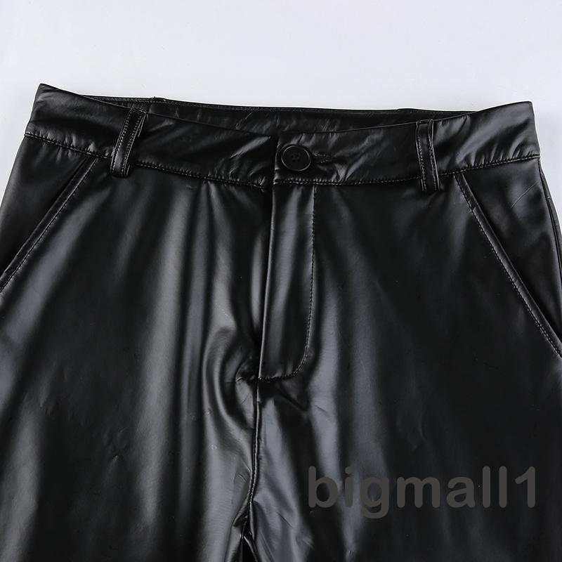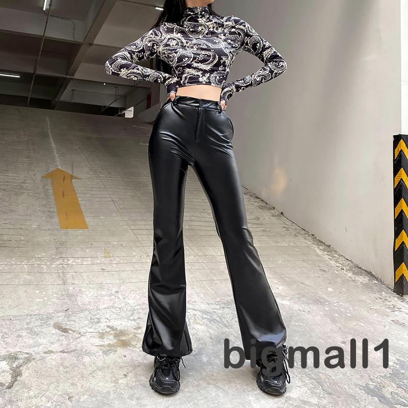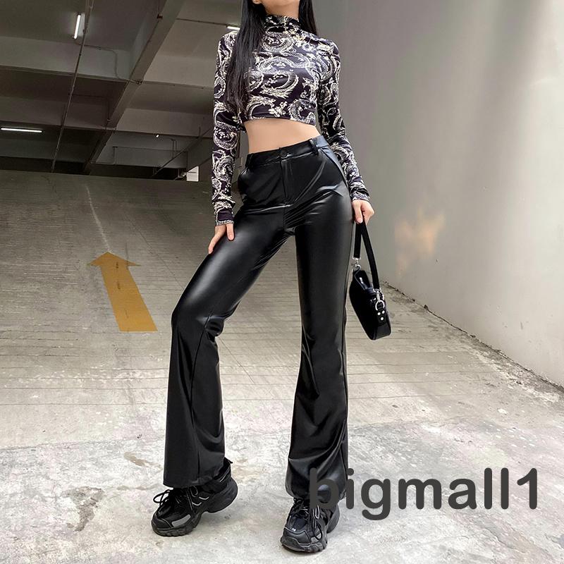 Bigmall - กางเกงหนังเทียม ขากว้าง เอวสูง สําหรับผู้หญิง