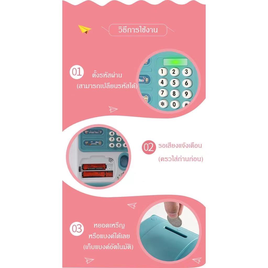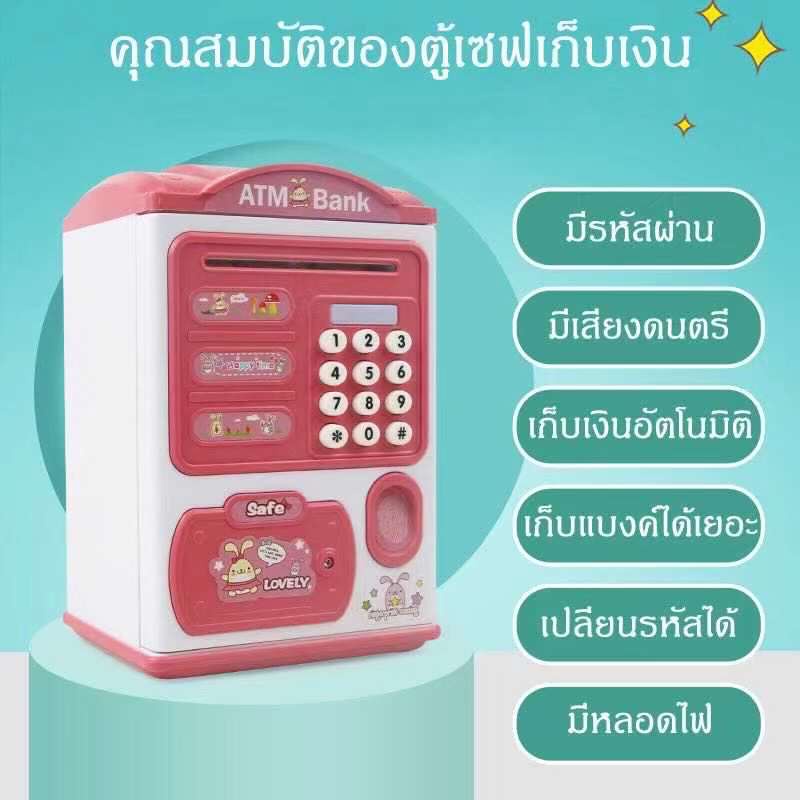 【สินค้าพร้อม】 ออมสิน ATM กระปุกออมสิน มีดนตรีมีรหัส ตู้เซฟดูดแบงค์สามารถหยอดเหรียญได้