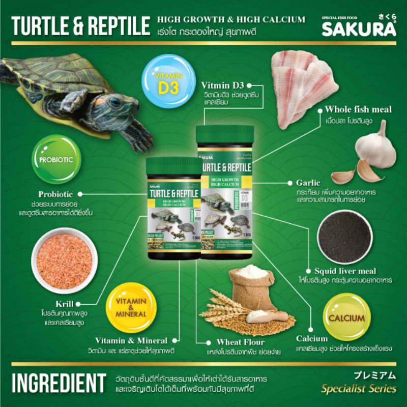 อาหารเต่าน้ำ Sakura Turtle & Rept สั่ง2กระปุกแถม3กระปุกให้เองโดยอัตโนมัติ เป็นล๊อตหมดอายุเดือน10ปี2023รับได้สั่งเลยค่ะ