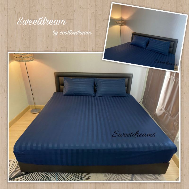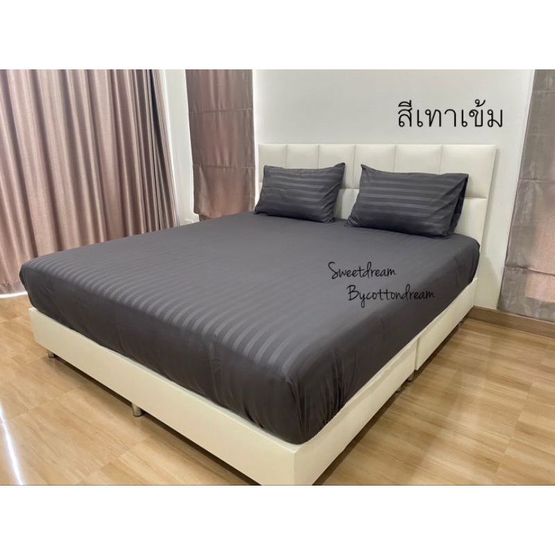 ผ้าปูที่นอนลายริ้ว ผ้าไมโครเทค ผ้าไทย ไร้รอยต่อ ทอเต็มผืน ทางร้านตัดเย็บเองกันไรฝุ่น กันขนสัตว์ติด