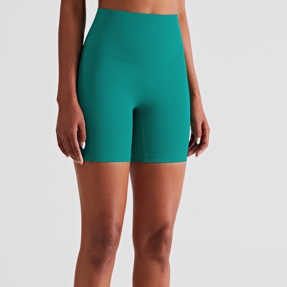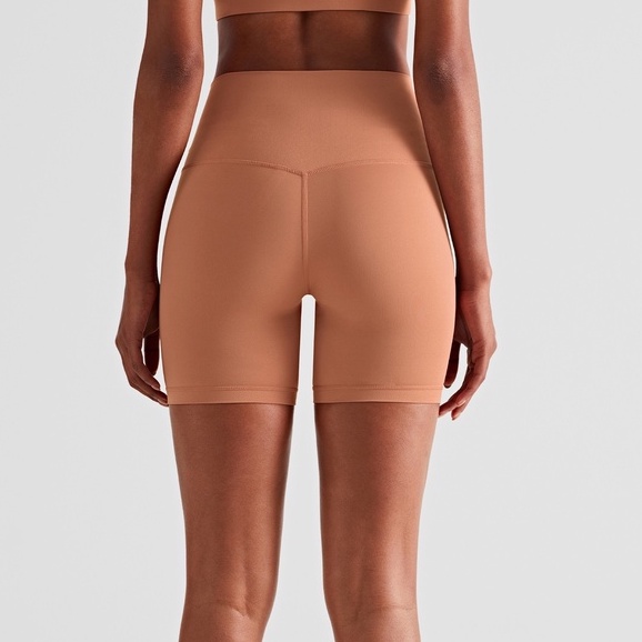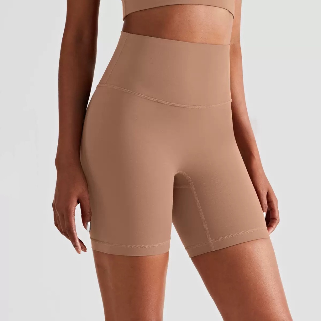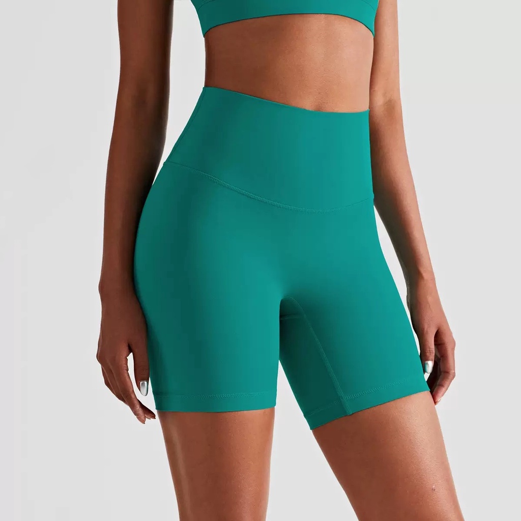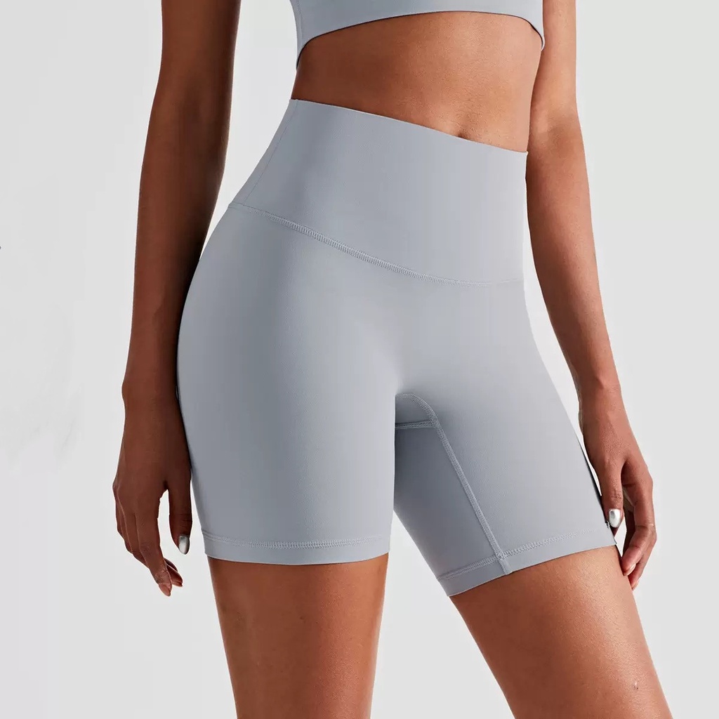 กางเกงโยคะออกกําลังกายแบบสั้นไม่มีเส้นด้านหน้าทีสําหรับผู้หญิงสวมใส่