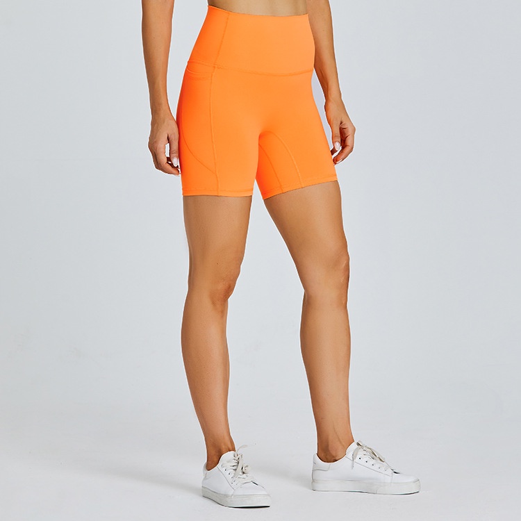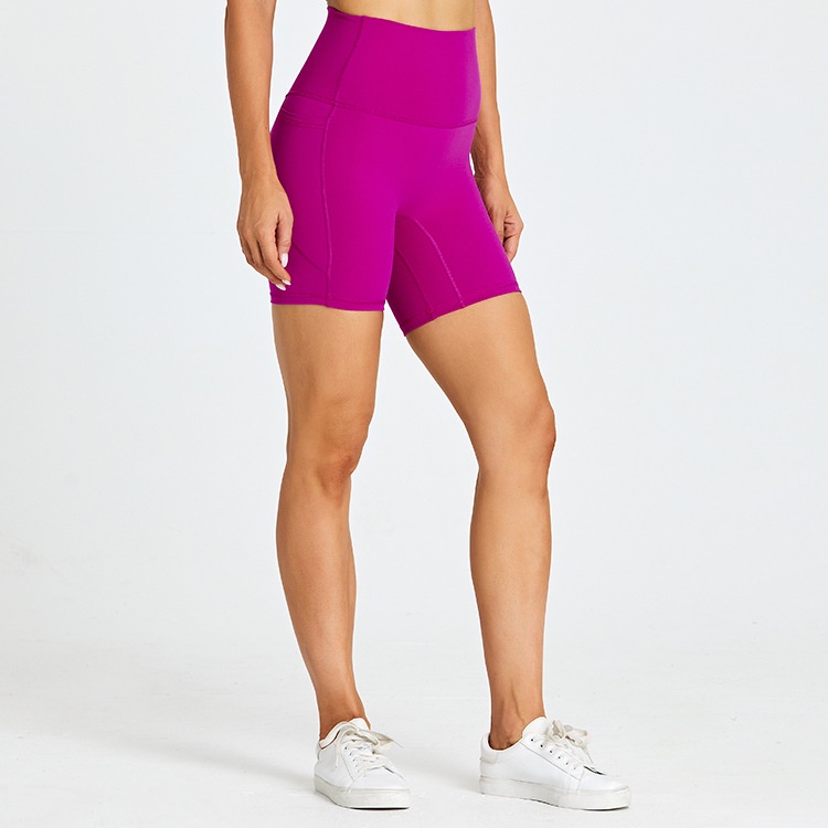 กระเป๋าทั้งสองด้านกางเกงขาสั้นเอวสูงผู้หญิงสําหรับยิมหรือชุดโยคะที่บ้าน