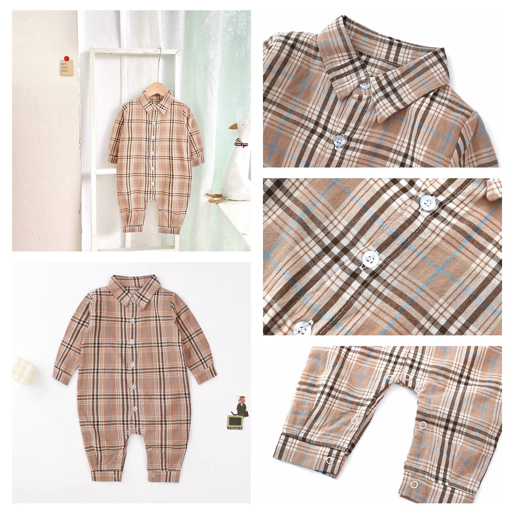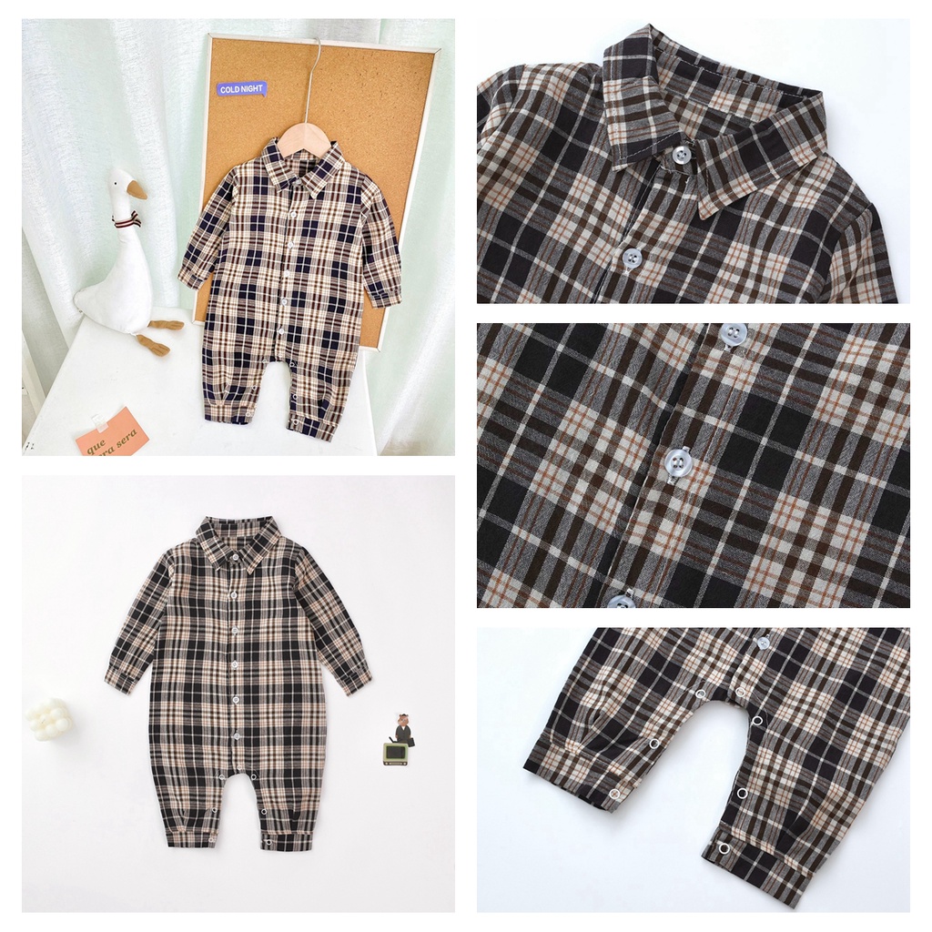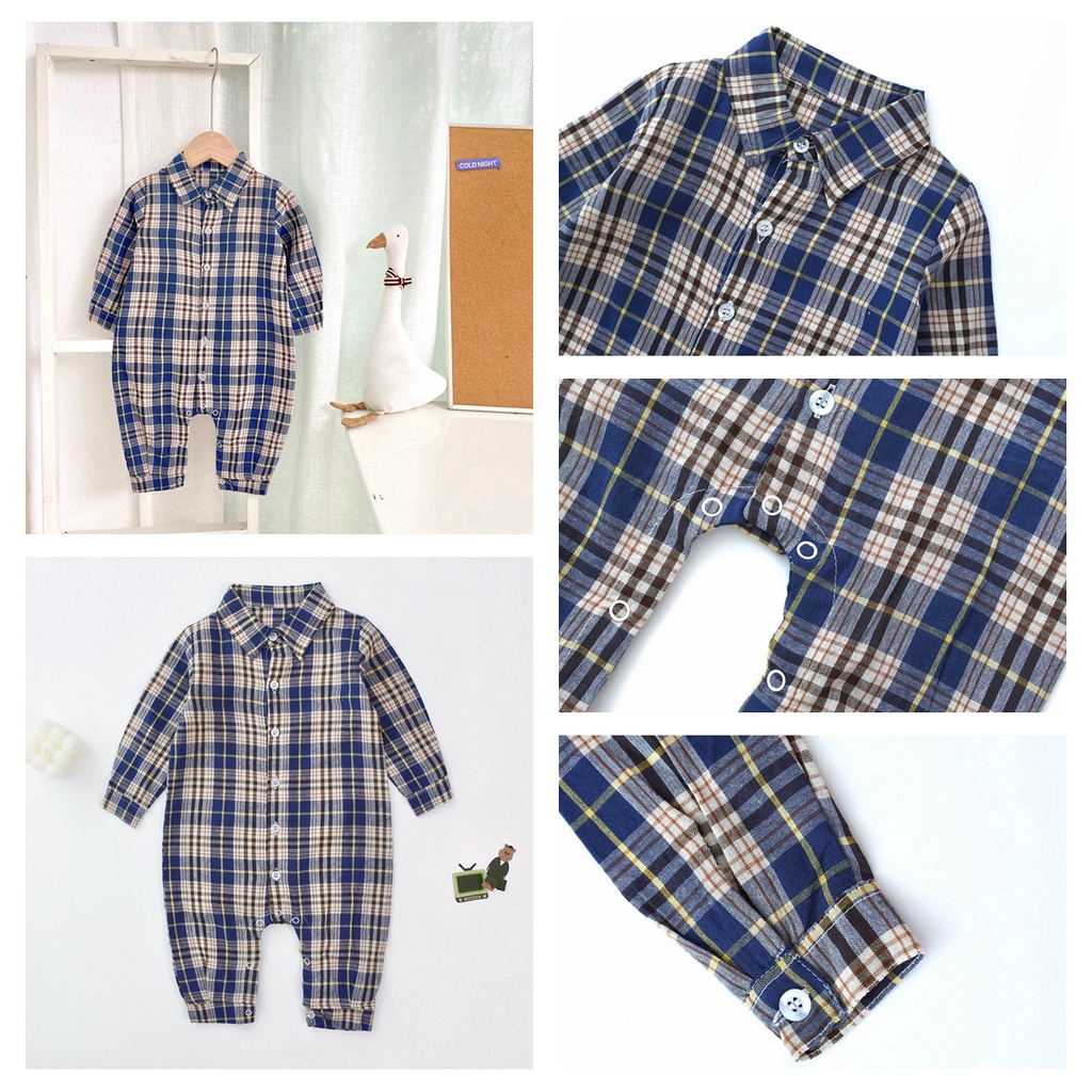 ชุดบอดี้สูท แขนยาว ลายสก๊อต สำหรับเด็กชาย