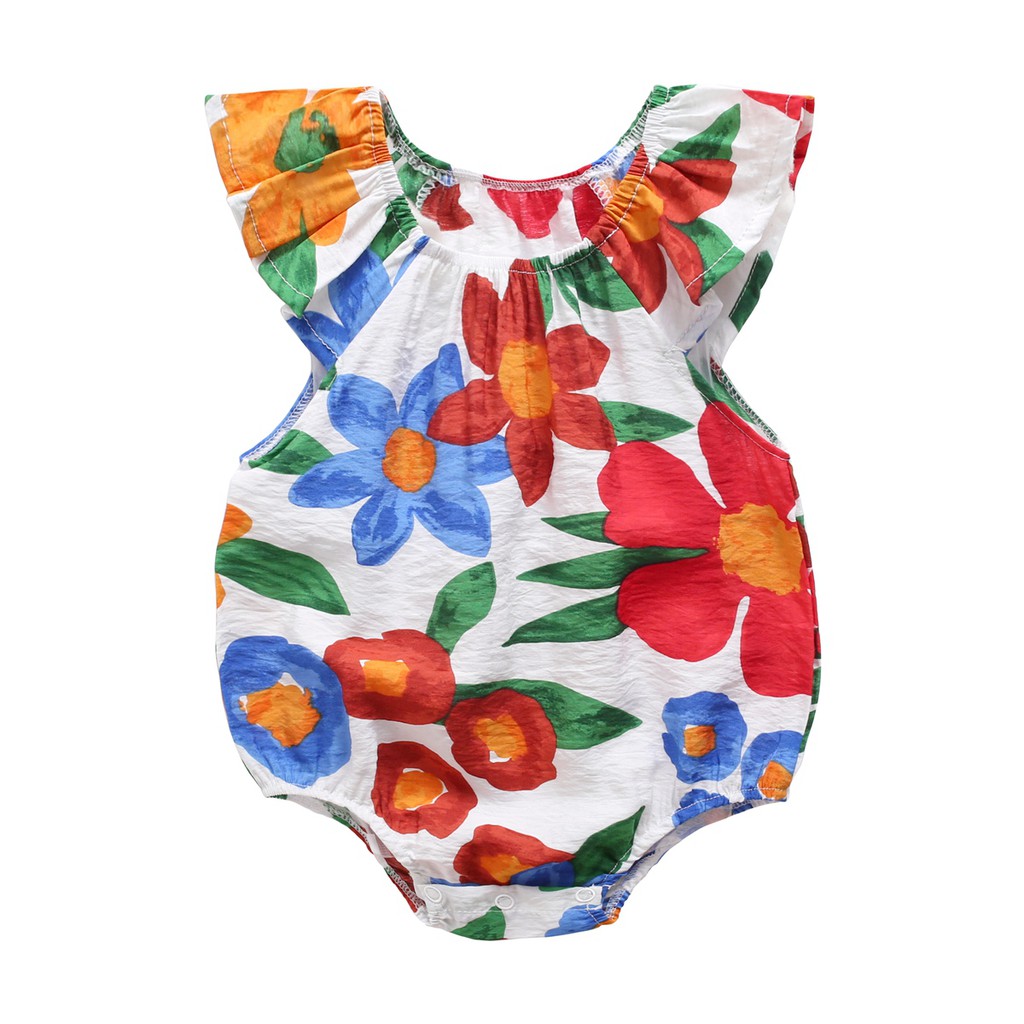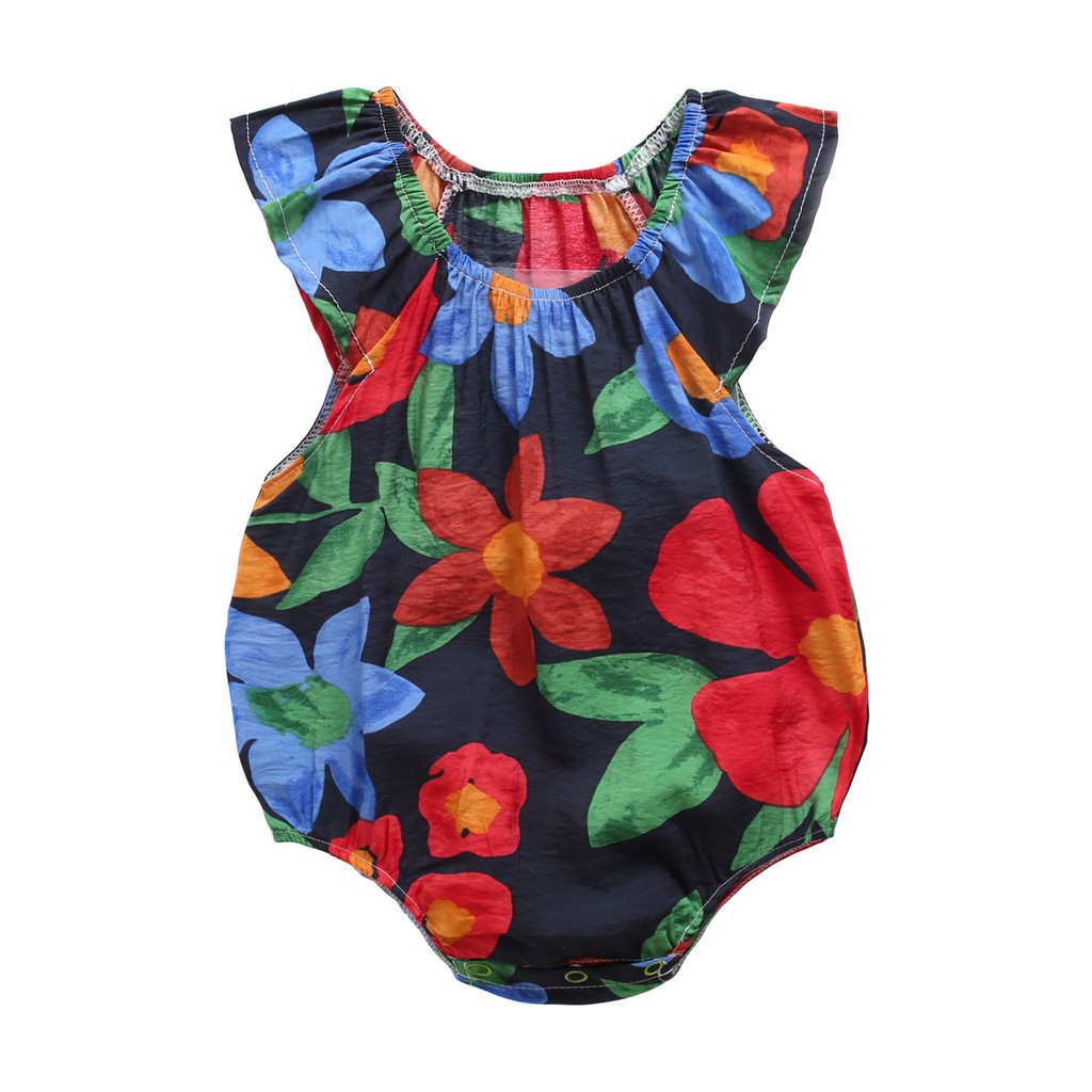 ชุดบอดี้สูท ผ้าฝ้าย พิมพ์ลายดอกไม้น่ารัก สําหรับเด็กผู้หญิง