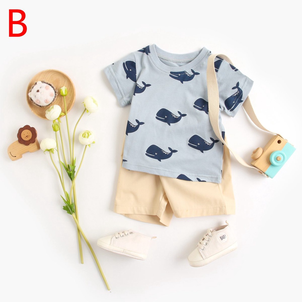 ชุดเสื้อผ้าเด็กผู้ชาย ผ้าฝ้าย พิมพ์ลายสัตว์ ชุดเสื้อผ้าเด็ก สไตล์ฤดูร้อน