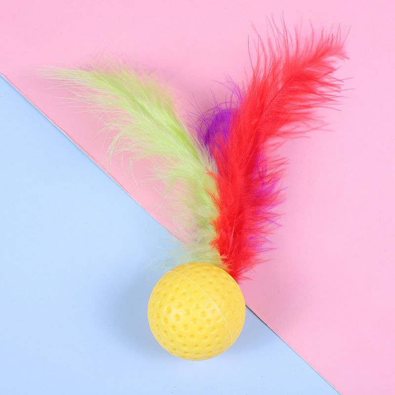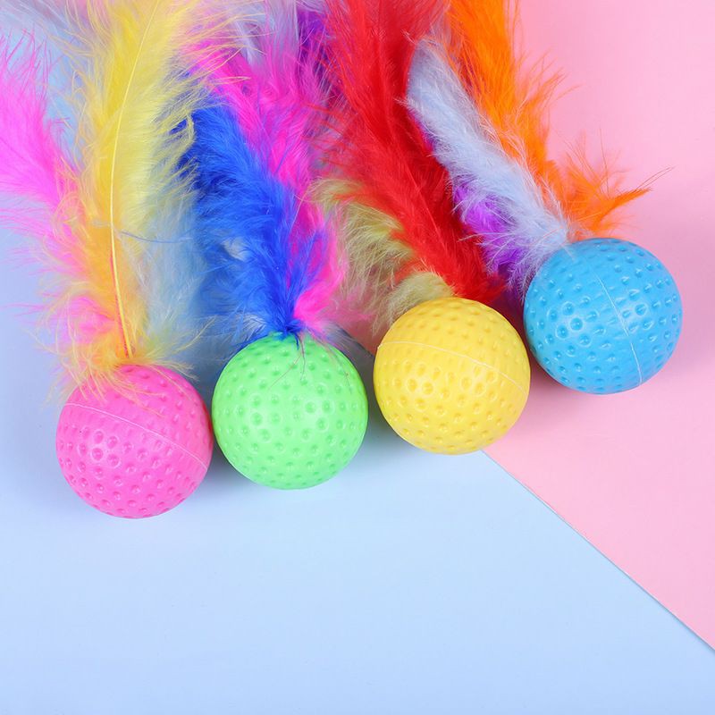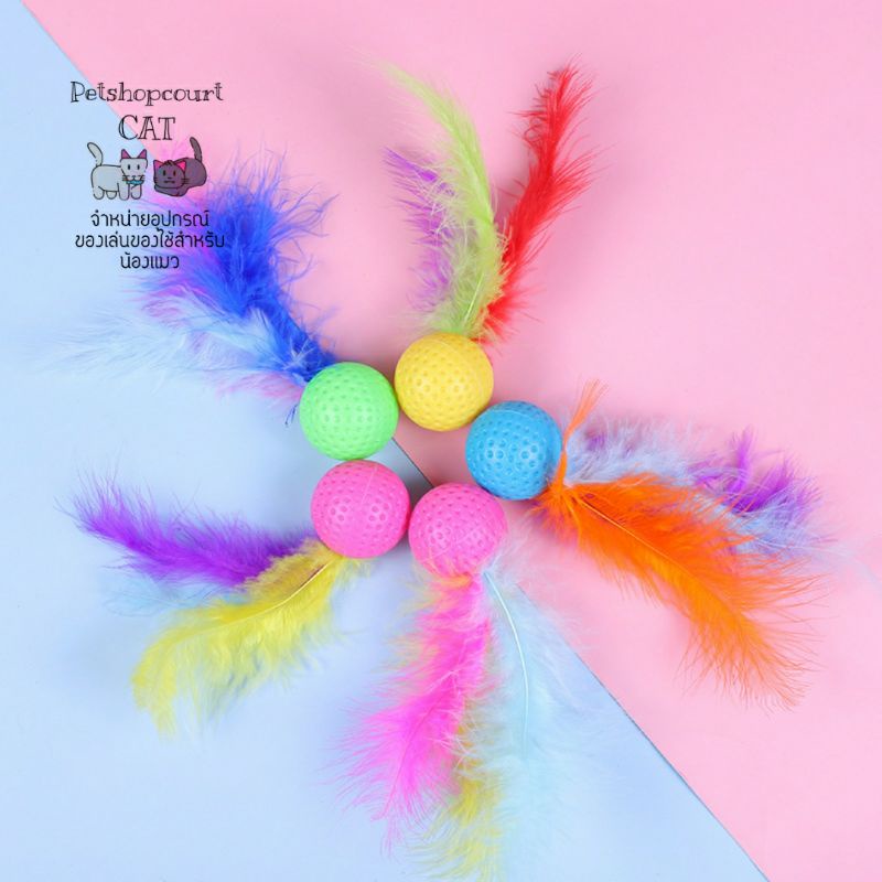 บอลขนนกเขย่ามีเสียง บอลของเล่น ลูกบอลหางขนนกเขย่ามีเสียง(ของเล่นแมว)