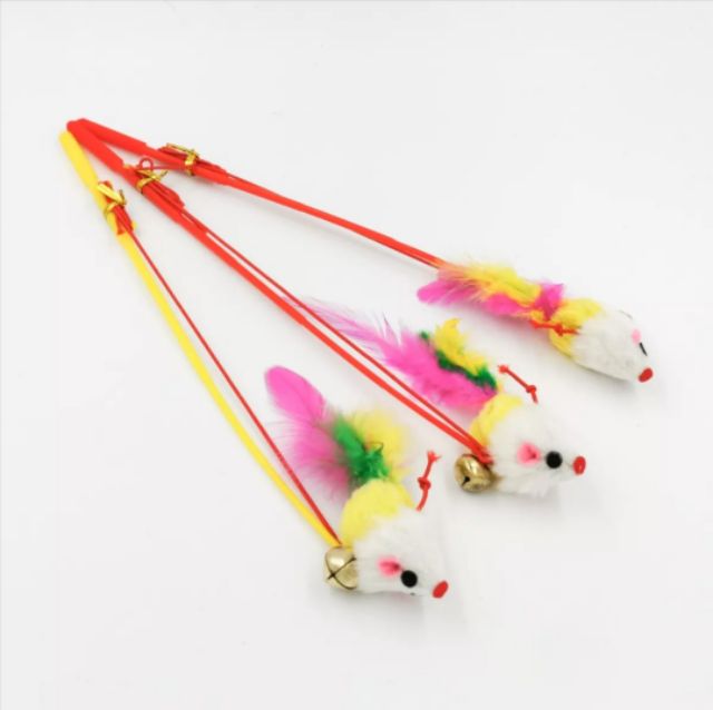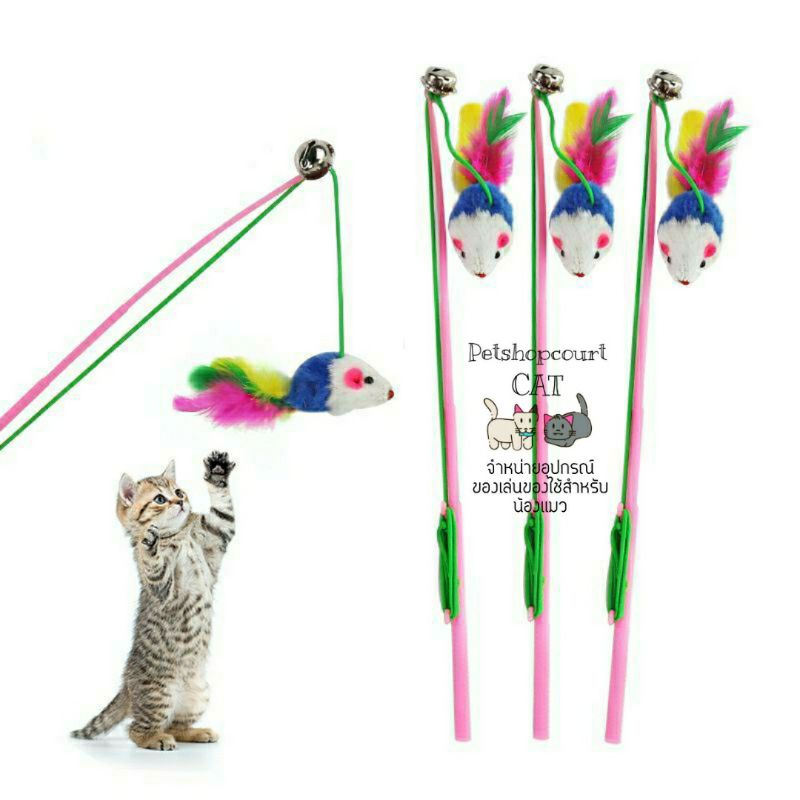 ไม้ตกแมว+ไม้ล่อแมวไม้เบ็ดหนูหางขนนก ไม้ตกแมวไม้ล่อแมวสีของเล่นแมว