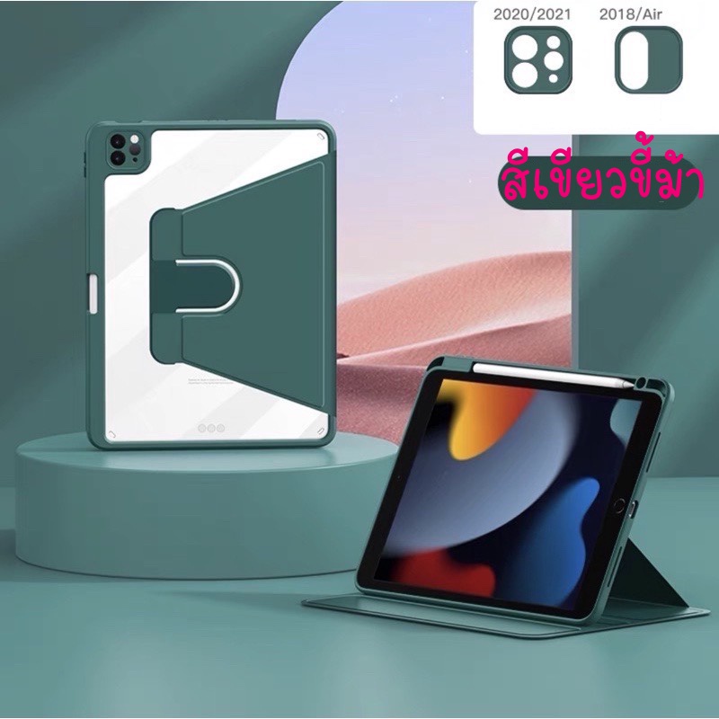 เคสสำหรับไอแพด Air7,6 11" M2-M3,air5 ,แอร์4 ,11โปร รุ่น 360°หมุนตั้ง/นอน เคสอะคริลิคสีใส ชาร์จปากกาได้