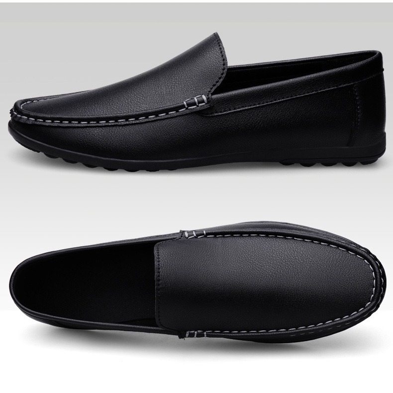 【ราคาถูก】รองเท้าโลฟเฟอร์ลําลอง หนังPUส้นแบน กันลื่น สีดํา สไตล์นักธุรกิจ สําหรับผู้ชาย