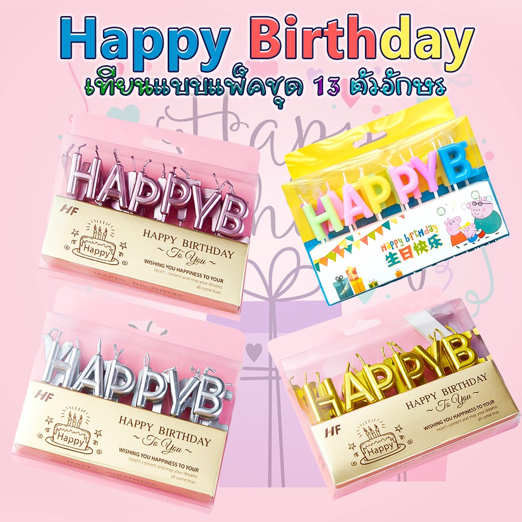 🎂เทียน Happy birthday แบบแพ็คชุด 📌สินค้าเลือกสี✔️พร้อมส่ง เทียนวันเกิด เทียนสี เทียนปักเค้กวันเกิด