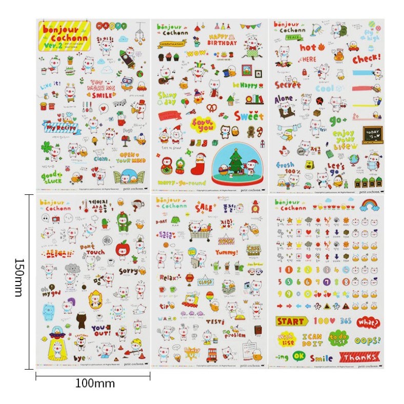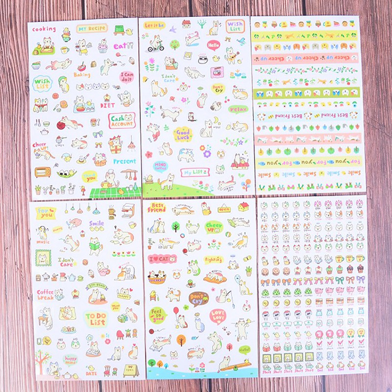 รวมสติกเกอร์ลายเกาหลีสุดน่ารัก[1แพ็ค 6แผ่น ]✔️พร้อมส่ง 🧡 งานDIY ตกแต่ง สติ๊กเกอร์การ์ตูน ไดคัท