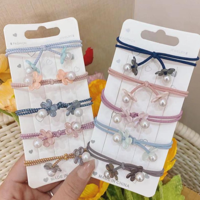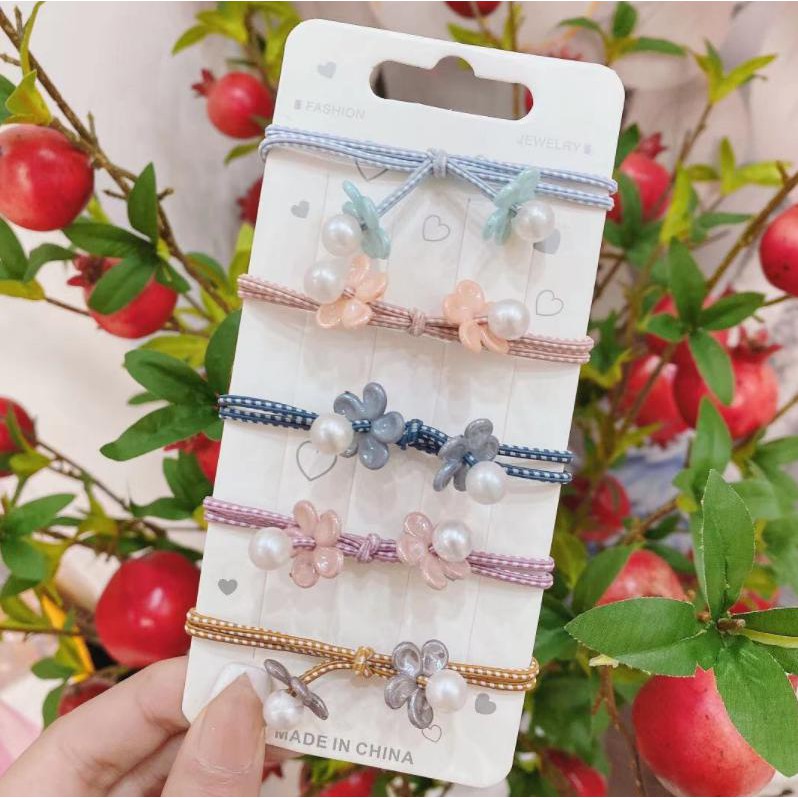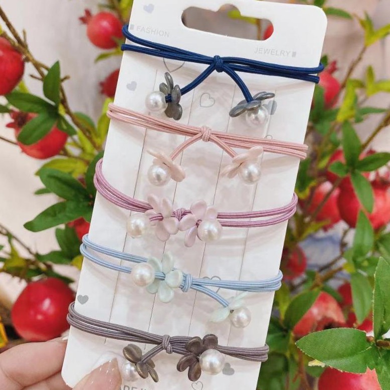 🌈ยางรัดผมสายลายคลาสสิคดอกไม้ไข่มุก(สุ่มลาย)ชิ้นละ 2บาท✔️พร้อมส่ง Ohwowshop ยางมัดผม ยางยืดรัดผมเกาหลี ยางรัดผม