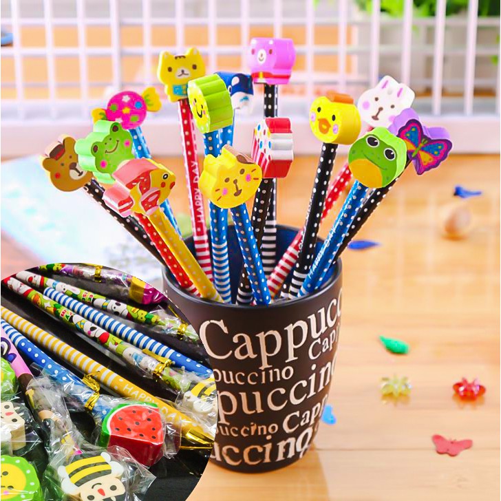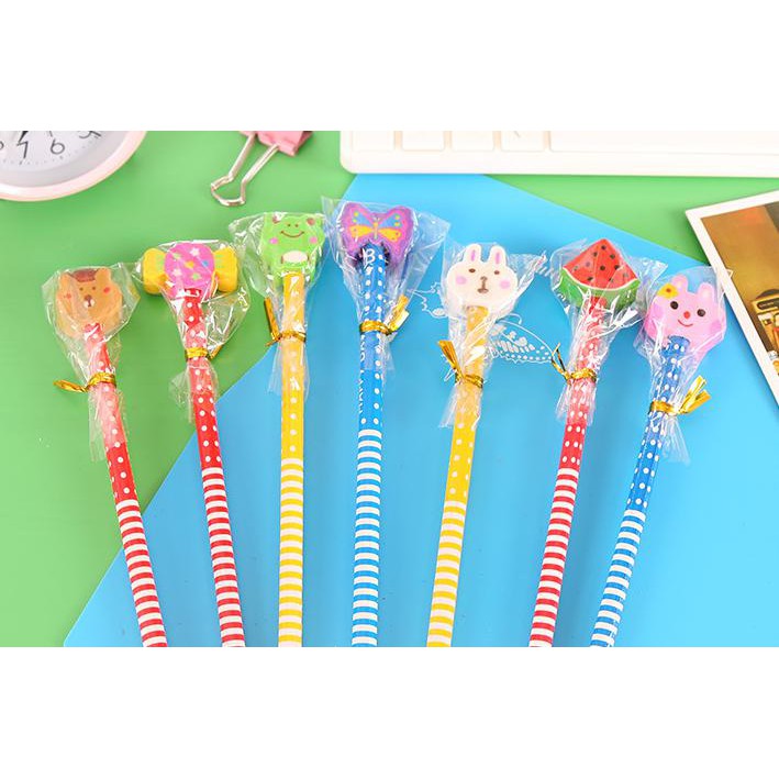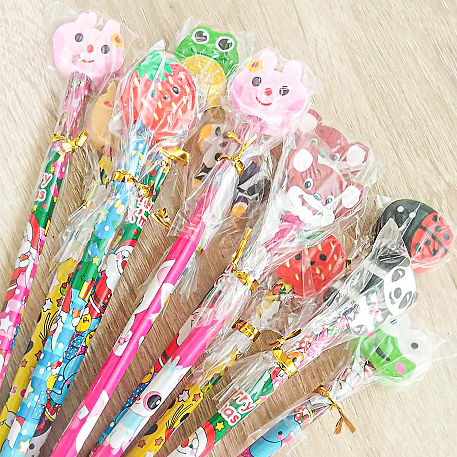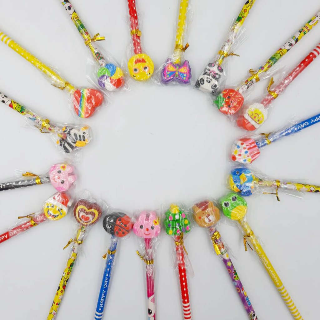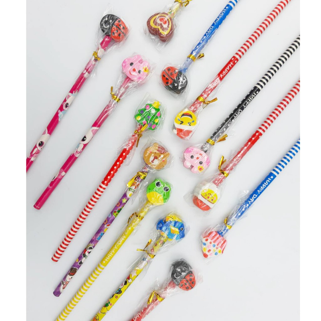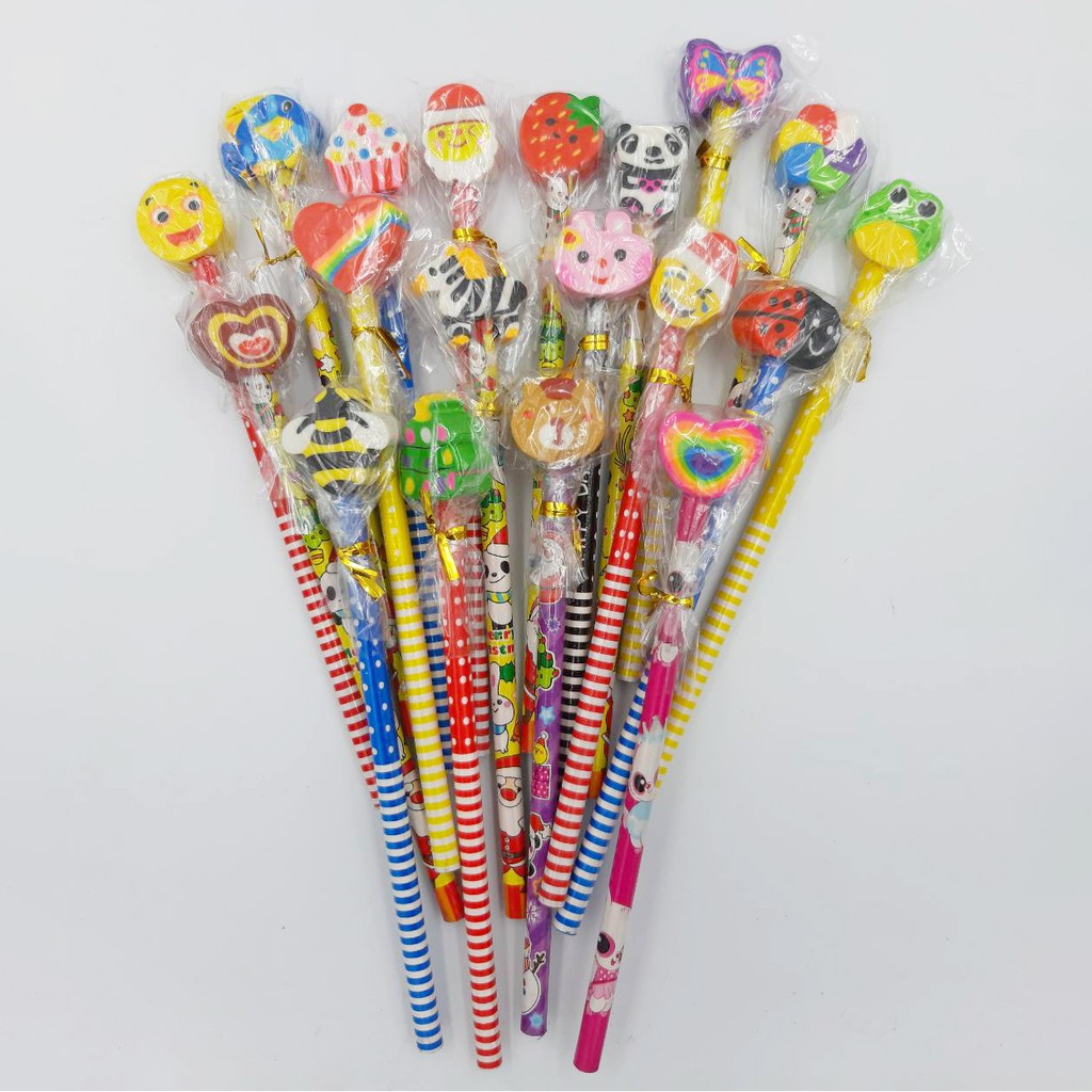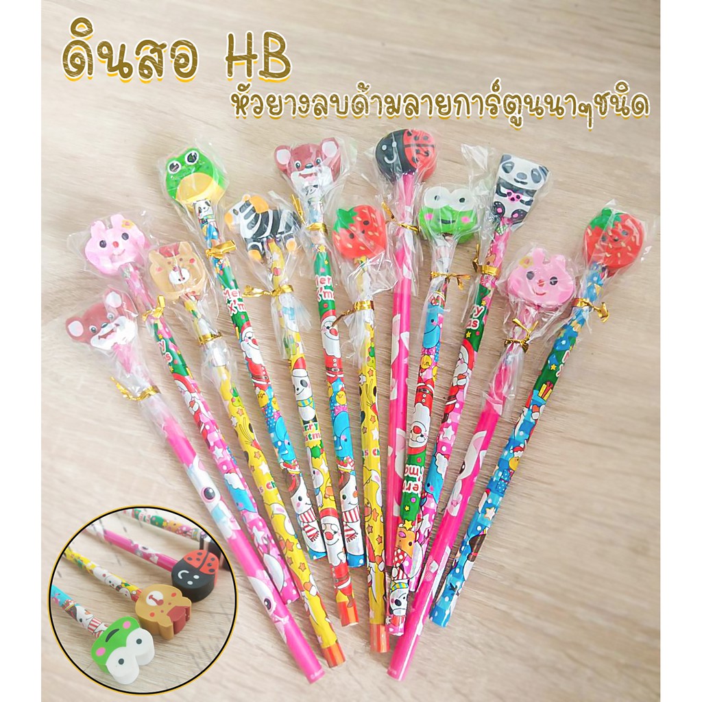 ✏️สุ่มแบบตามลาย ดินสอหัวยางลบ ดินสอไม้✔️พร้อมส่ง(สุ่มลาย)ดินสอหัวการ์ตูน ดินสอHB เครื่องเขียน