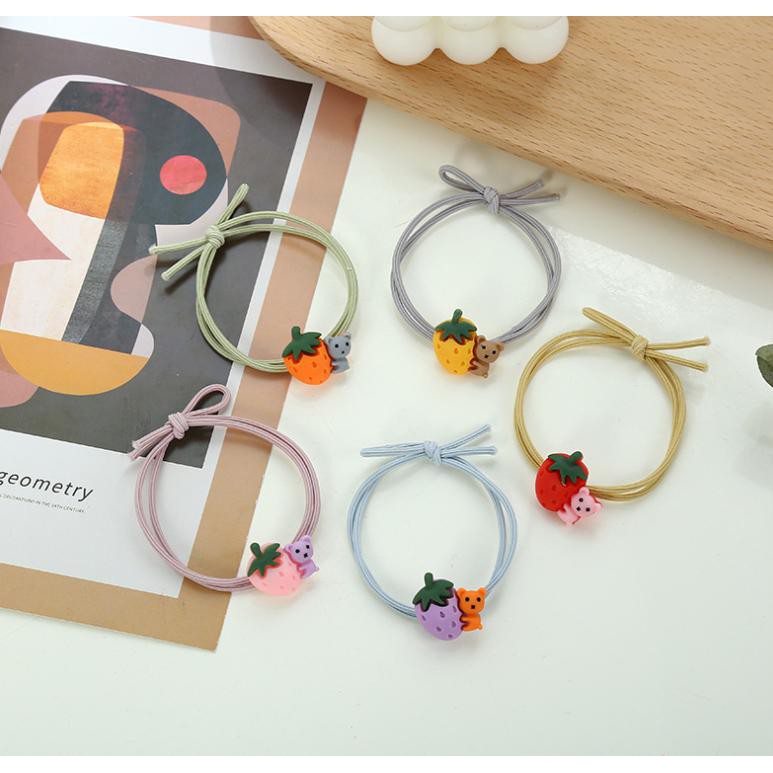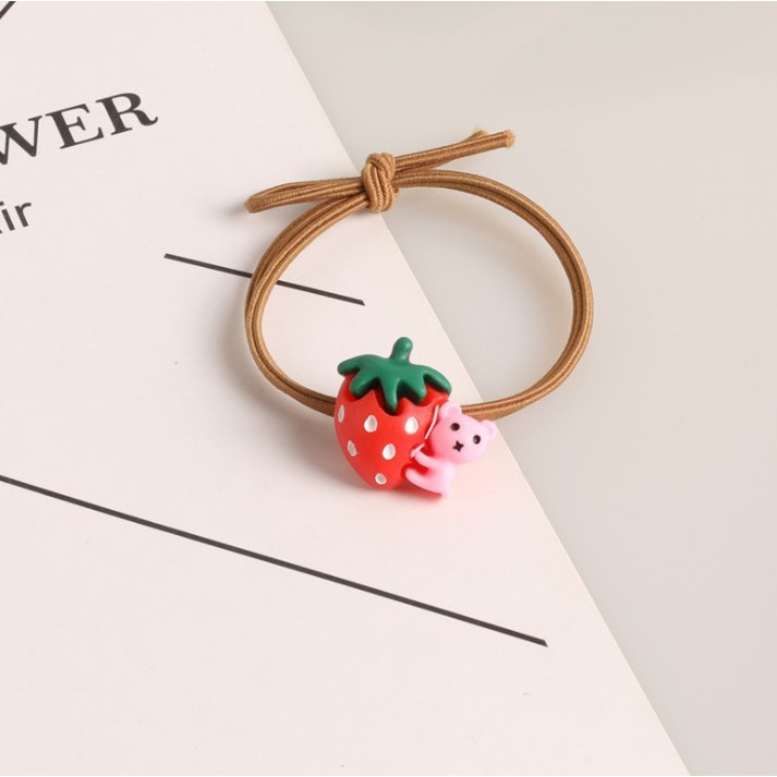 🔥ยางยืดรัดผมรูปทรงหมีเกาะสตอเบอรี่ ชิ้นละ 2บาท✔️พร้อมส่ง หนังยางรัดผมเกาหลี ยางรัดผมไสต์เกาหลี ยางรัดผม ยางมัดผม