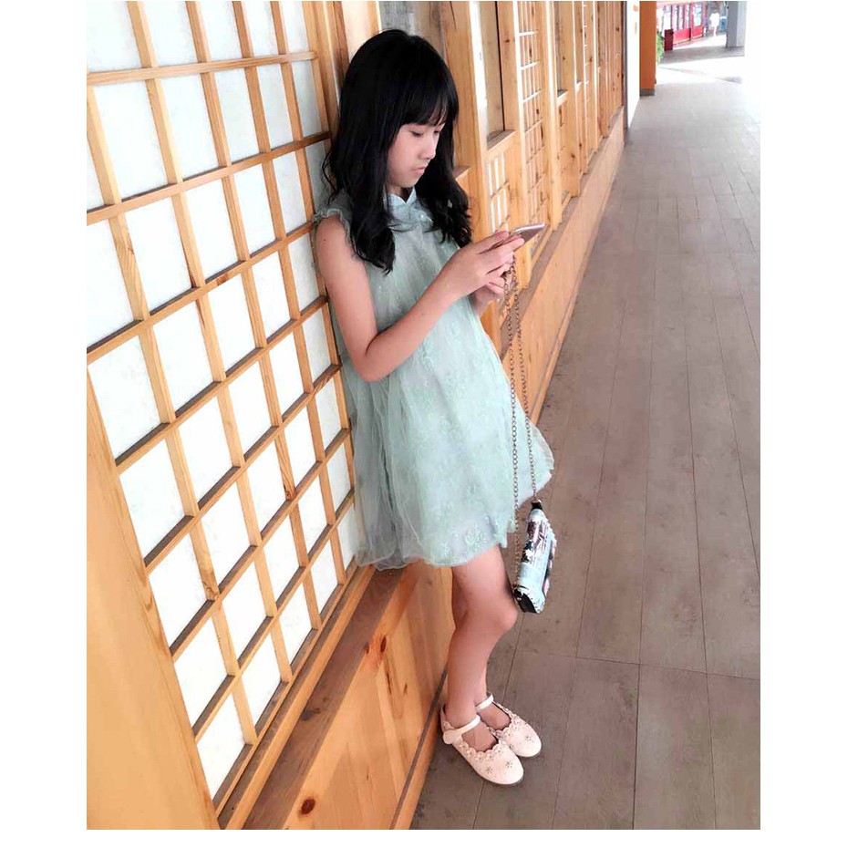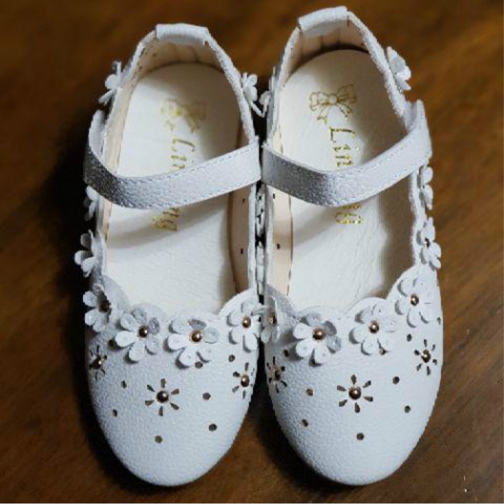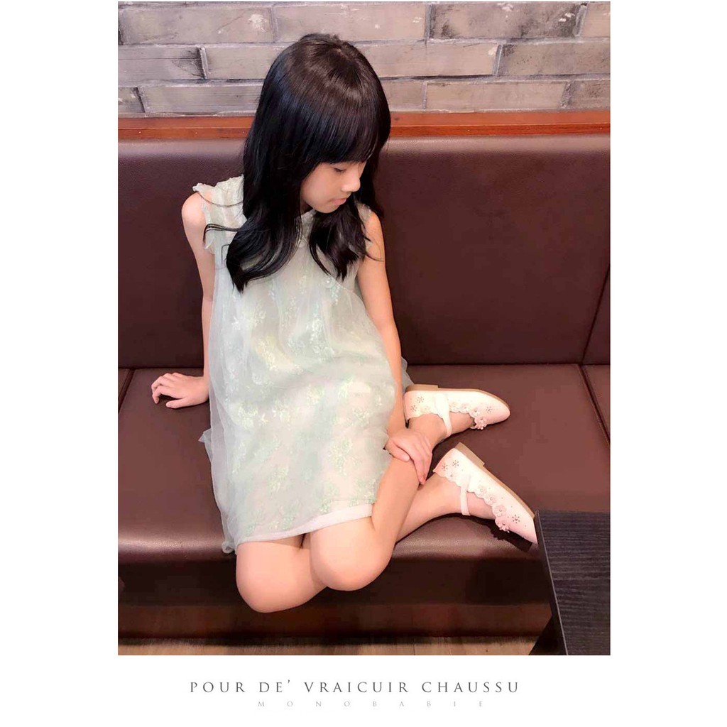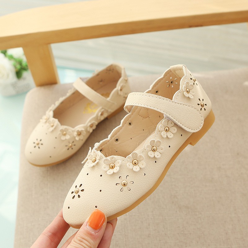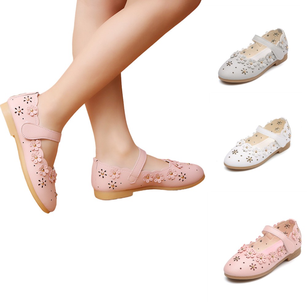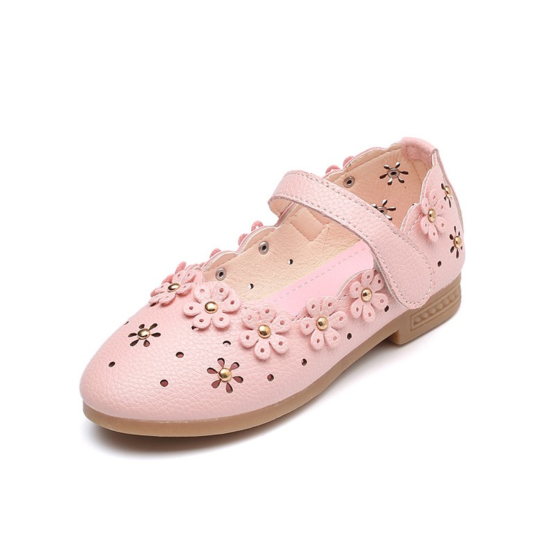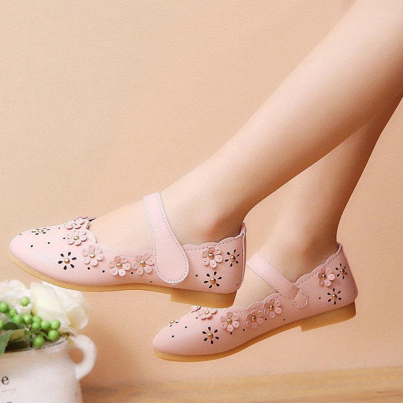 สาวแฟชั่นกลวงออกดอกไม้หนังเจ้าหญิงรองเท้าเด็กนุ่มแต่เพียงผู้เดียวน้ําหนักเบาเทศกาลพรรคเวลโครส้นต่ํา