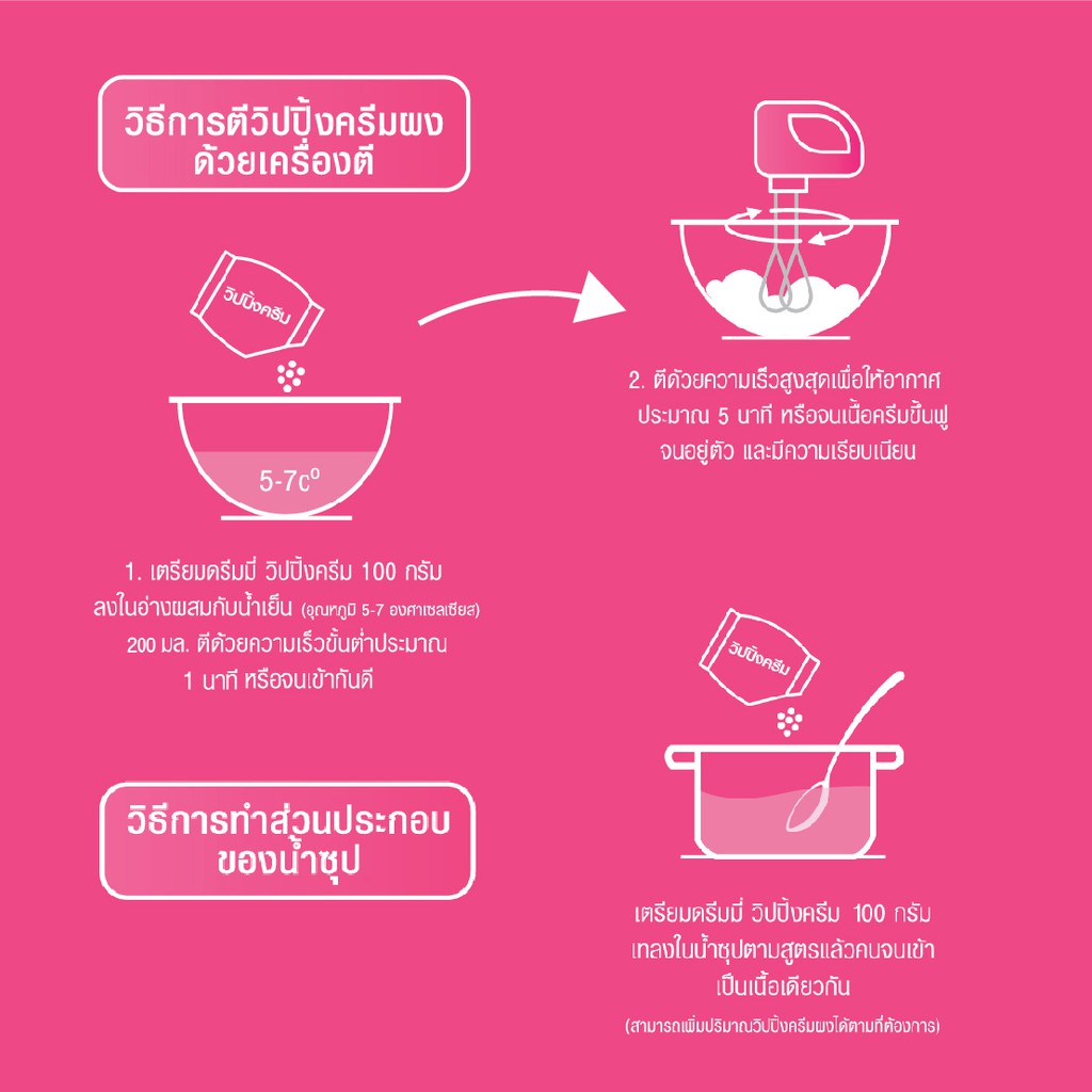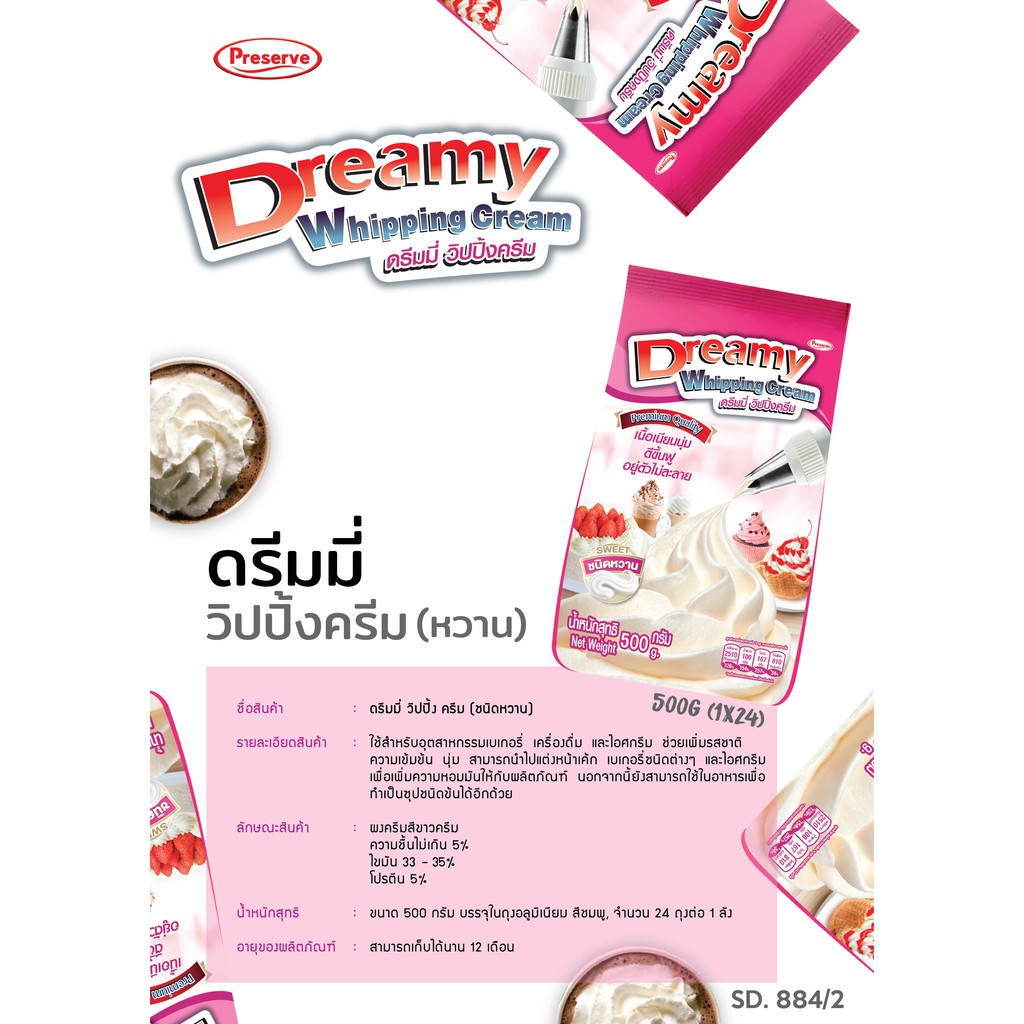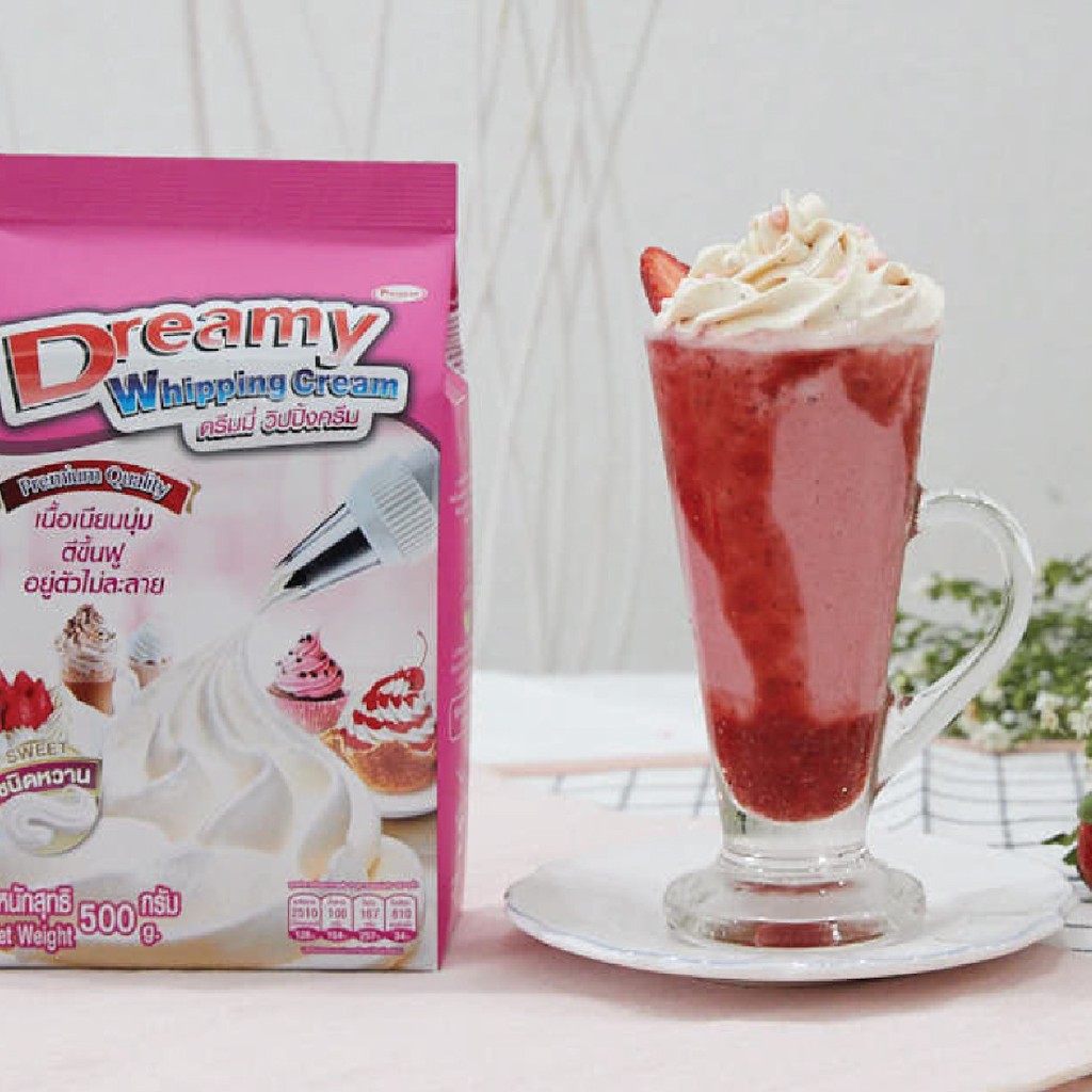 Dreamy วิปปิ้งครีม สีชมพู สูตรหวาน ขนาด 500 กรัม