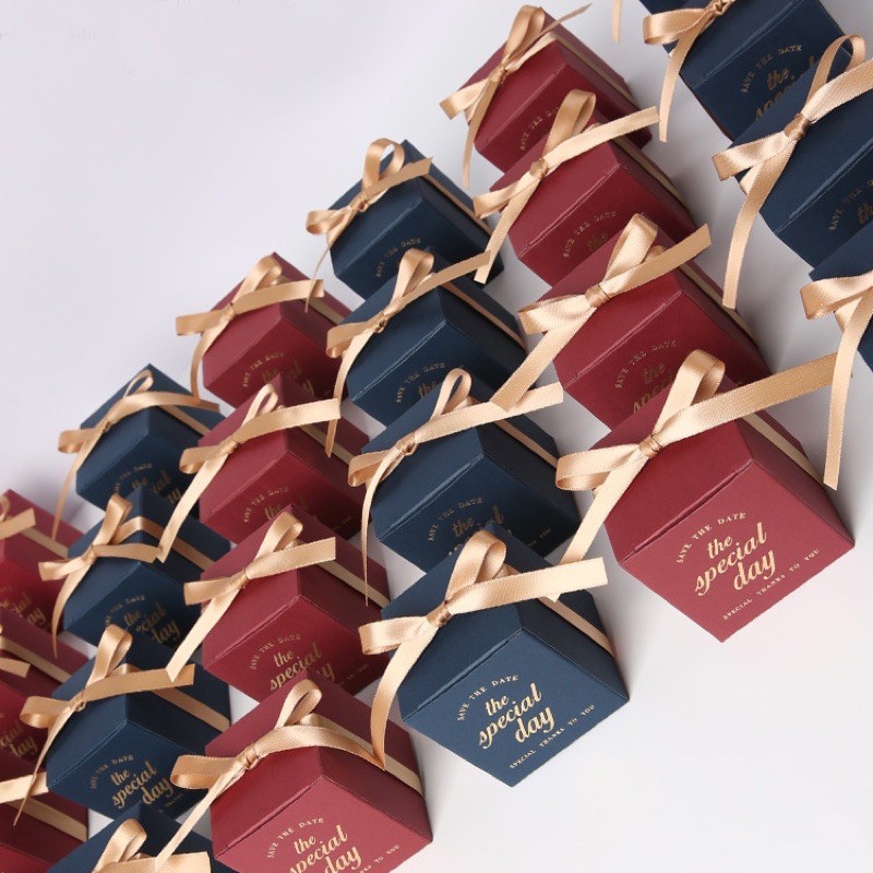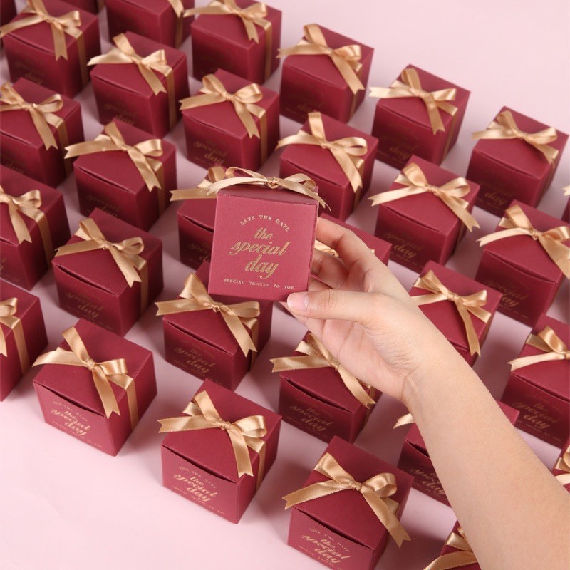 •แพ๊คคู่2ชิ้น• มินิกล่องของขวัญ +เชือกริบบิ้น กล่องของชำร่วย กล่องสำเร็จรูป ดีไซน์หรู